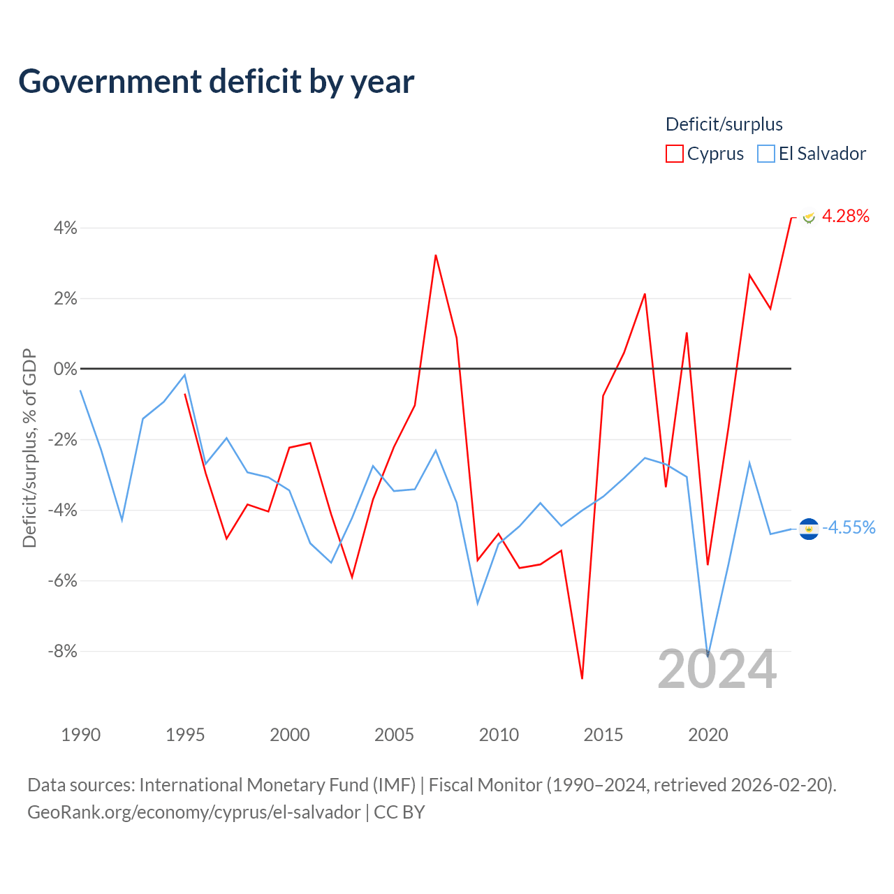 - International Monetary Fund (IMF) | Fiscal Monitor (1990–2024, retrieved 2026-02-20)