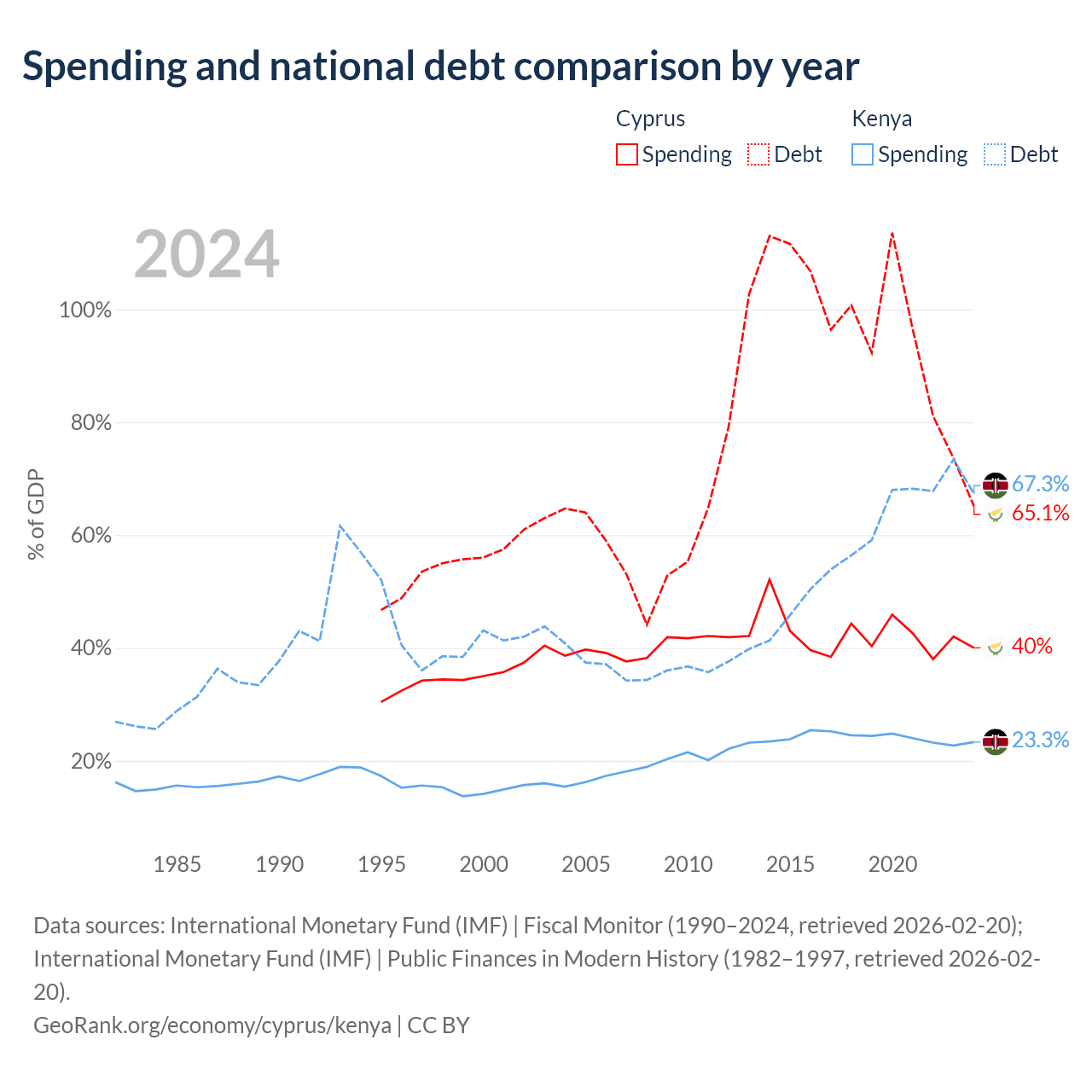 Cyprus has $24.5B in government debt (65.1% of GDP), compared to $81B (67.3% of GDP) in Kenya.
