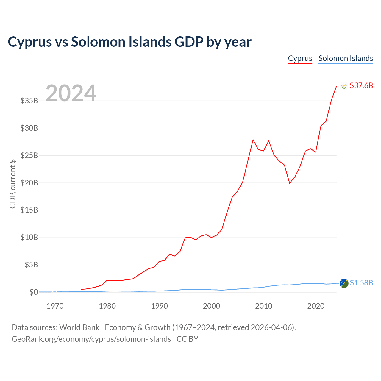 Cyprus vs Solomon Islands GDP by year