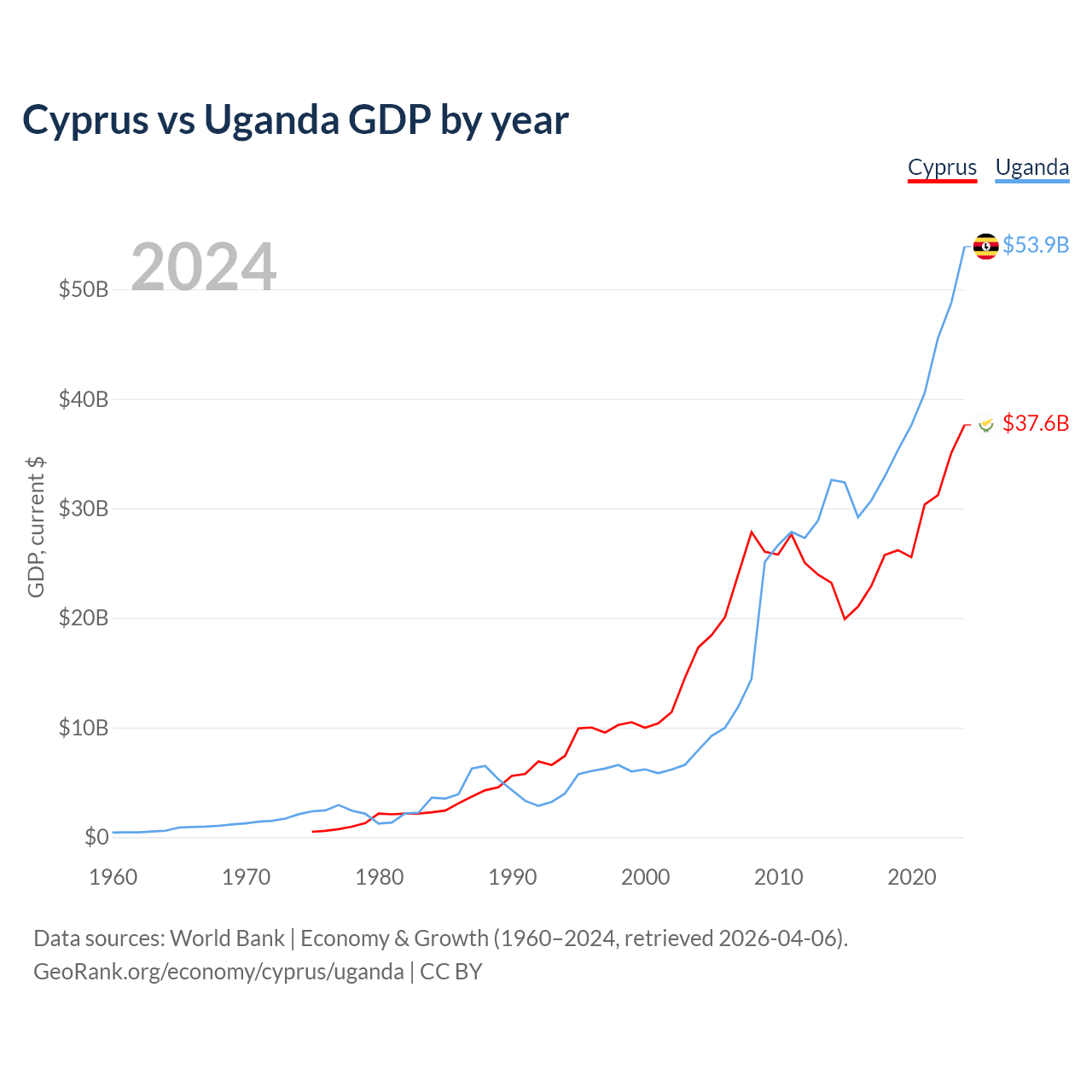 Cyprus vs Uganda GDP by year