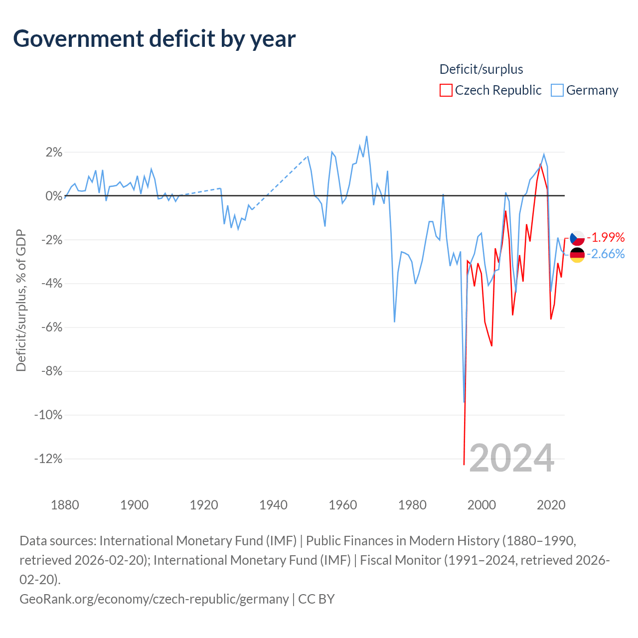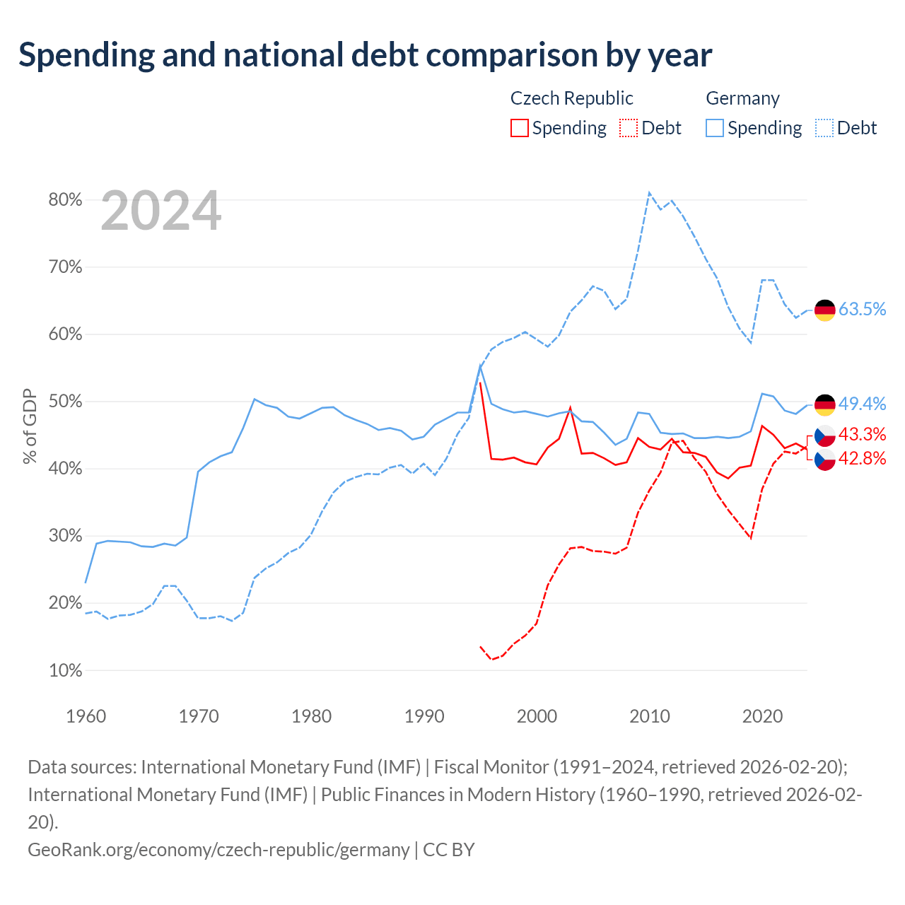 The Czech Republic has $150B in government debt (43.3% of GDP), compared to $2.97T (63.5% of GDP) in Germany.