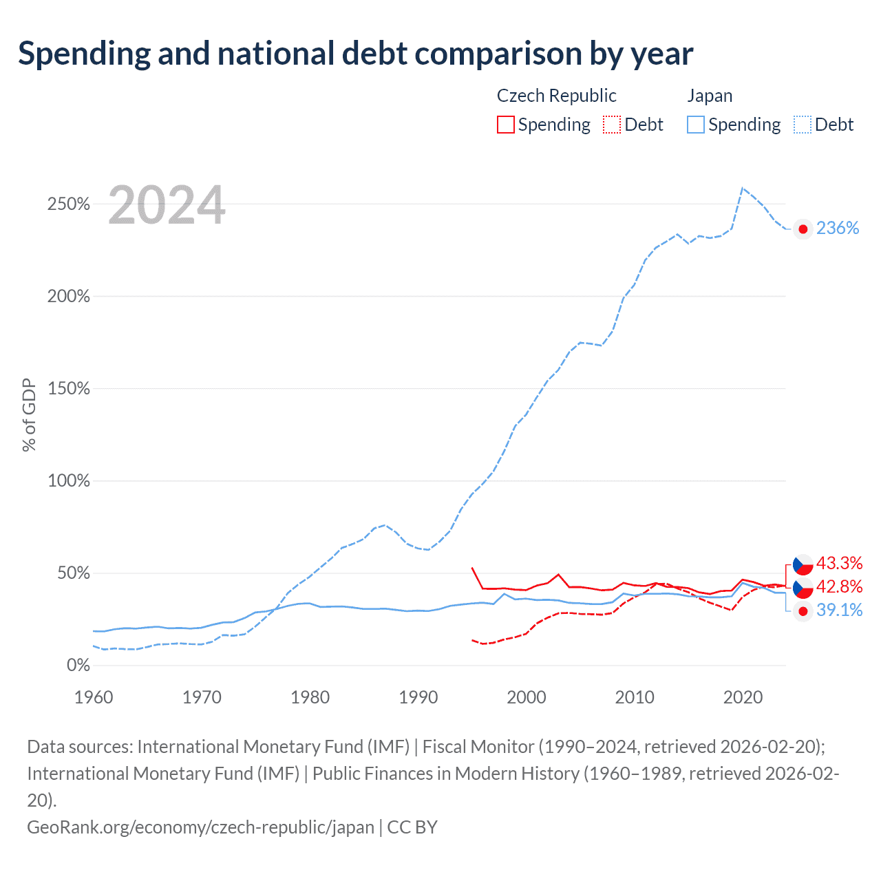 The Czech Republic has $150B in government debt (43.3% of GDP), compared to $9.51T (236.1% of GDP) in Japan.