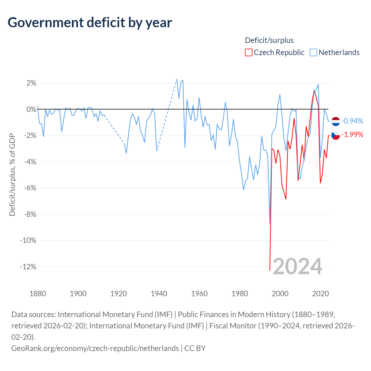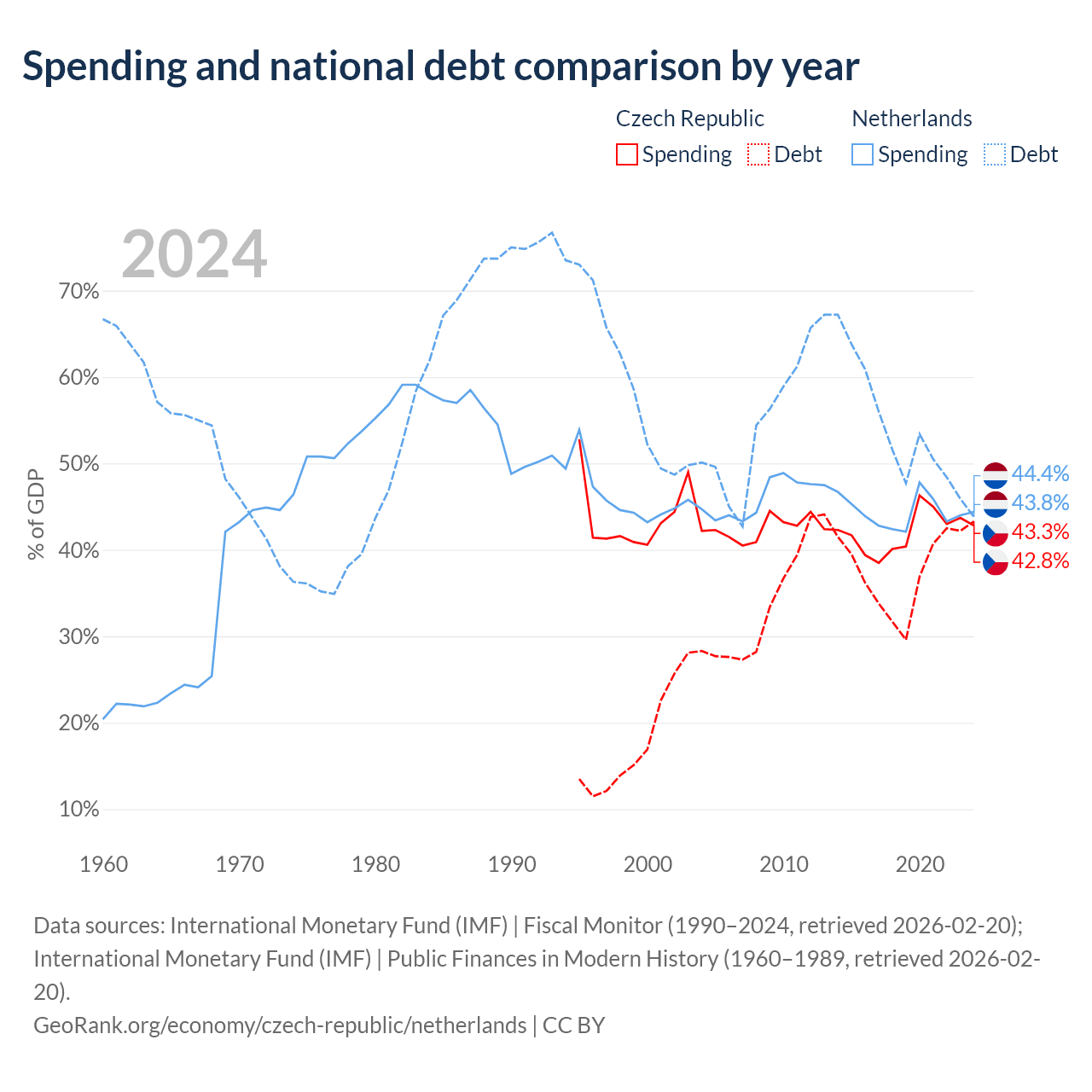 The Czech Republic has $150B in government debt (43.3% of GDP), compared to $532B (43.8% of GDP) in the Netherlands.