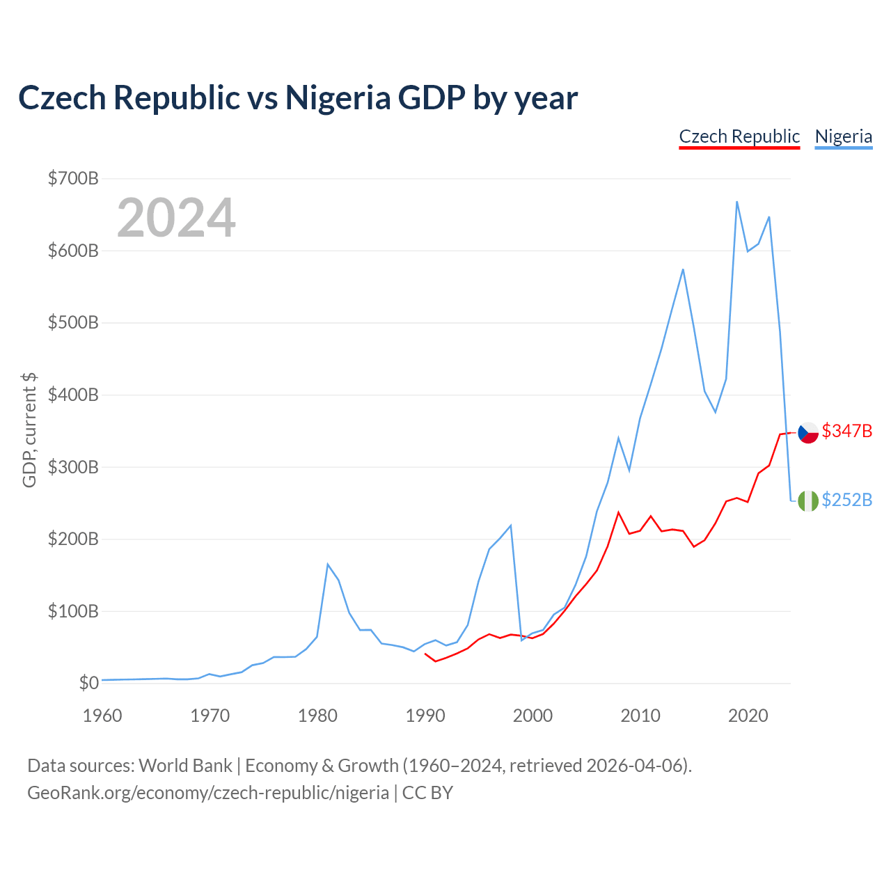 Czech Republic vs Nigeria GDP by year