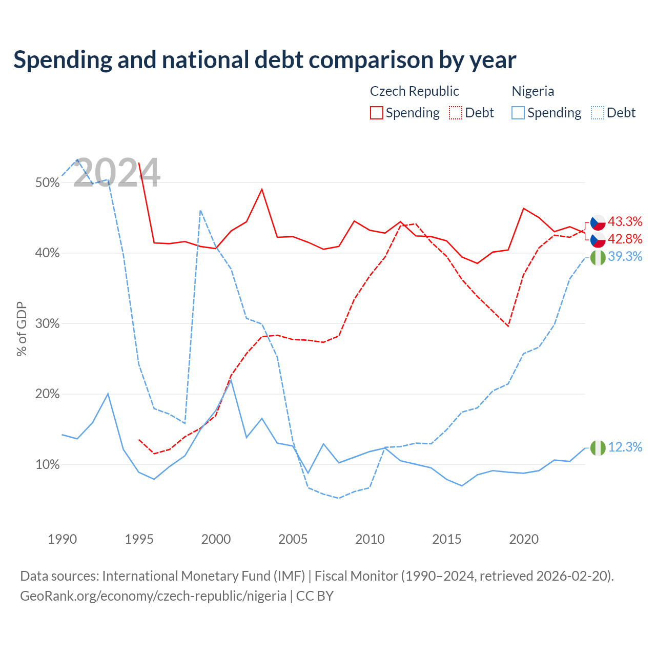 The Czech Republic has $150B in government debt (43.3% of GDP), compared to $99.2B (39.3% of GDP) in Nigeria.