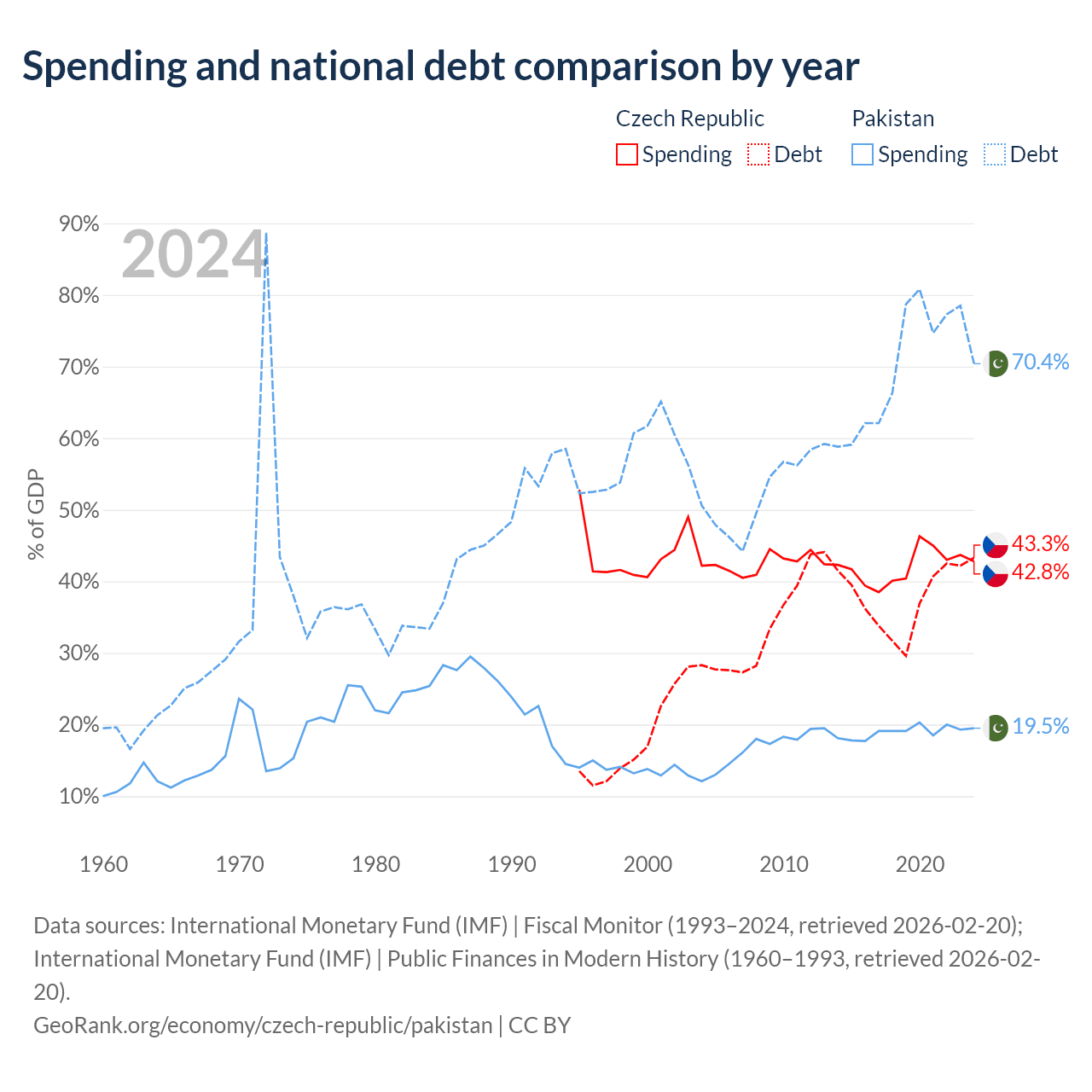 The Czech Republic has $150B in government debt (43.3% of GDP), compared to $262B (70.4% of GDP) in Pakistan.