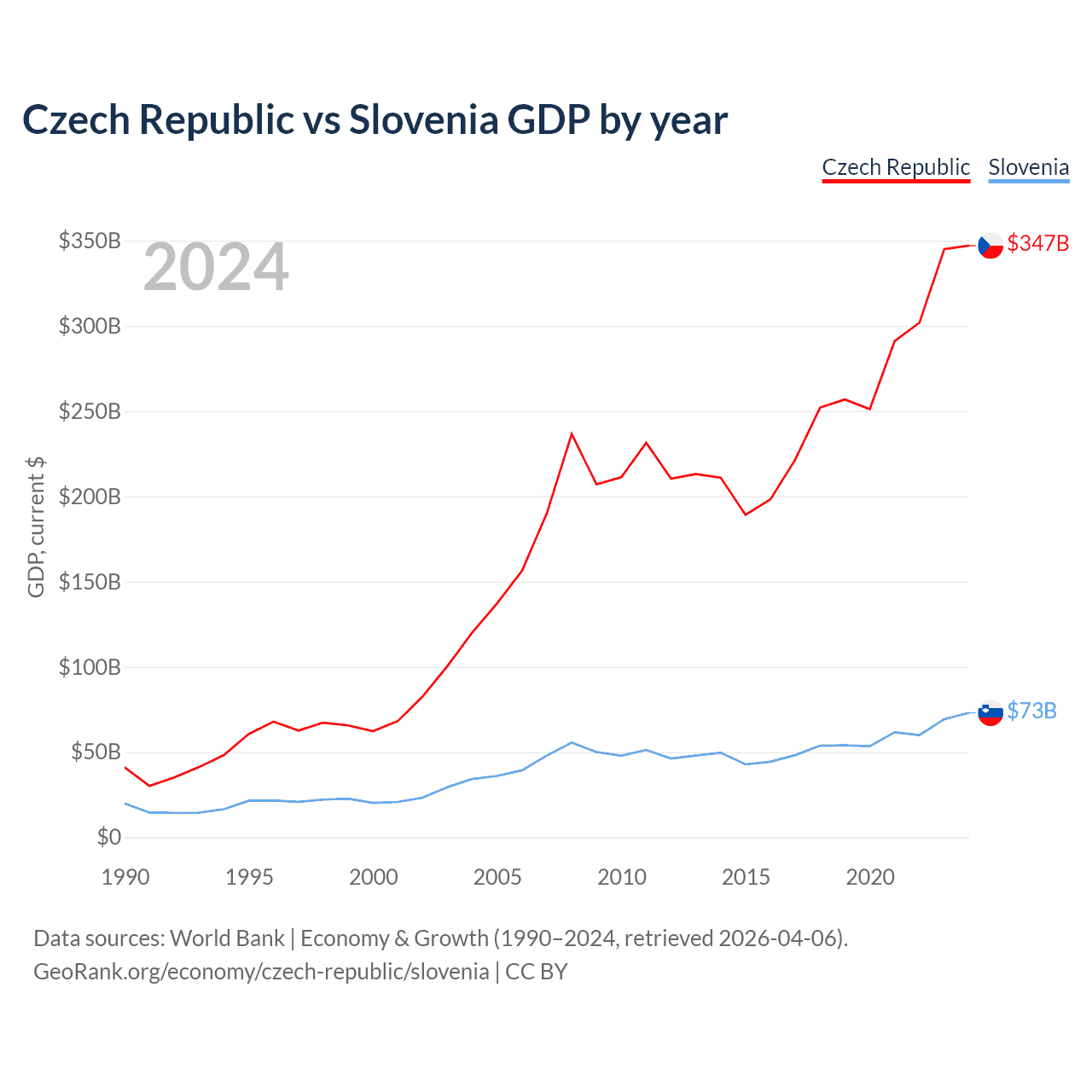 Czech Republic vs Slovenia GDP by year
