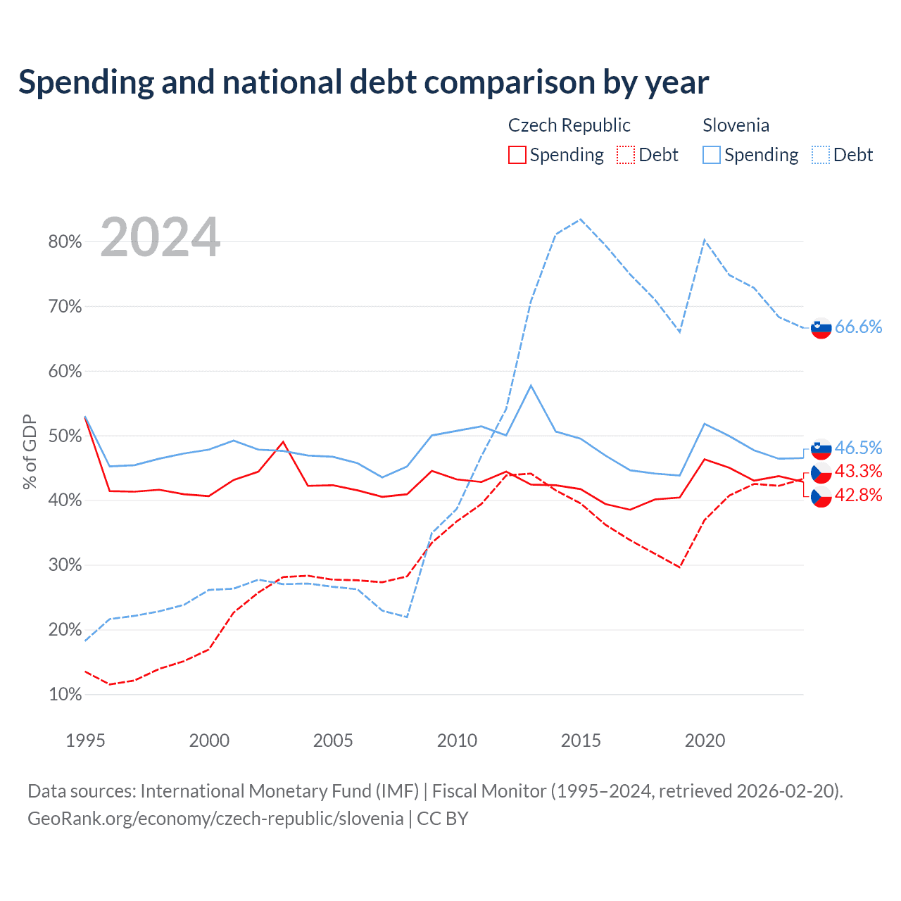 The Czech Republic has $150B in government debt (43.3% of GDP), compared to $48.6B (66.6% of GDP) in Slovenia.