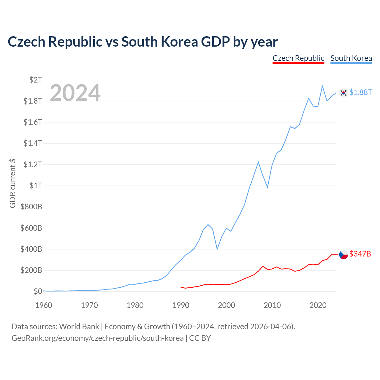 Czech Republic vs South Korea GDP by year