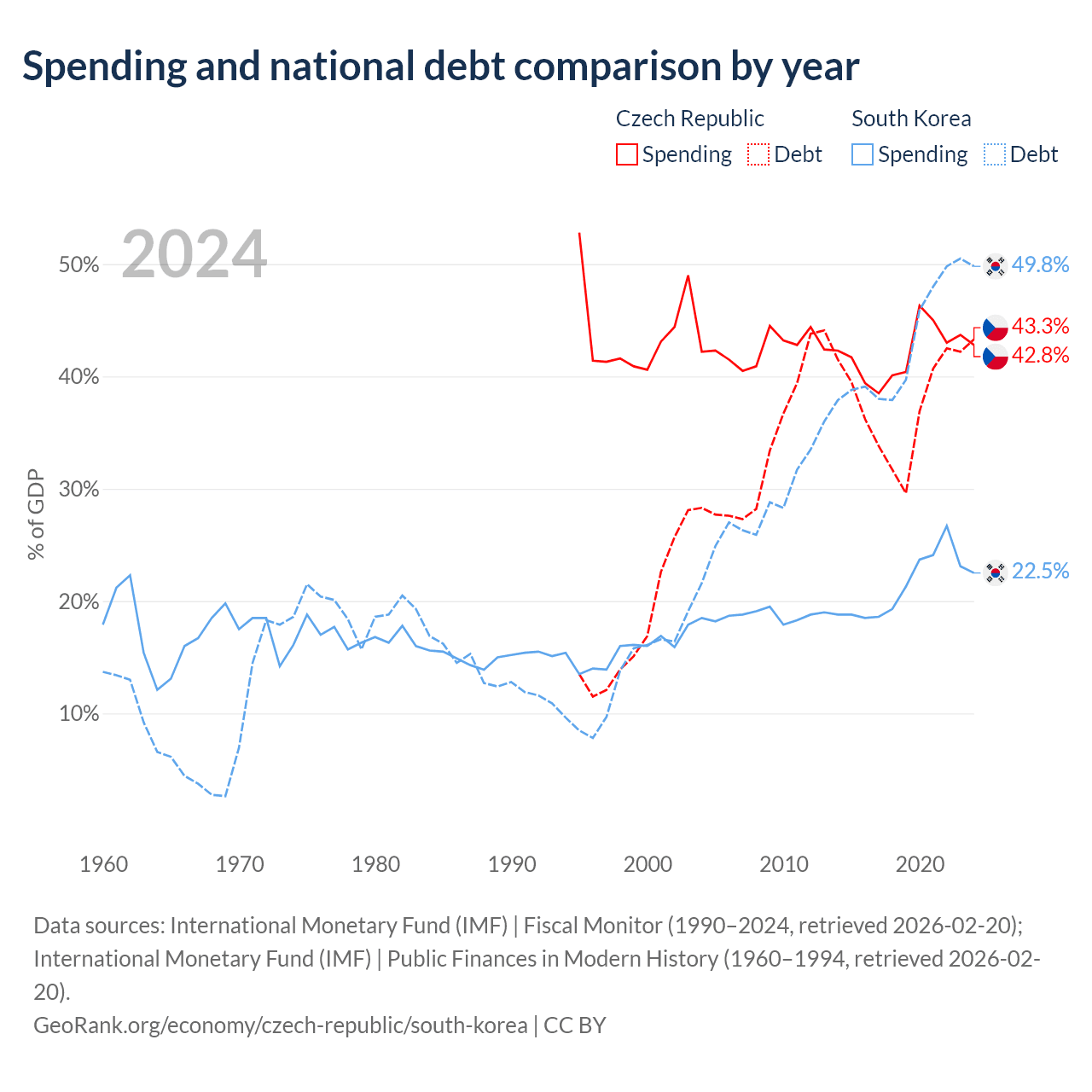The Czech Republic has $150B in government debt (43.3% of GDP), compared to $934B (49.8% of GDP) in South Korea.