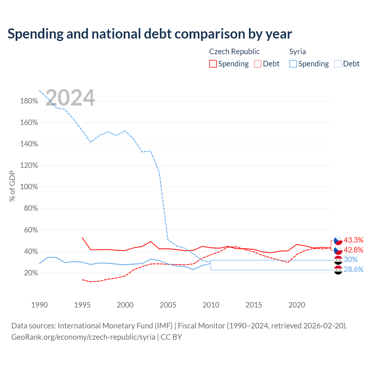 The Czech Republic has $150B in government debt (43.3% of GDP), compared to $18.4B (30% of GDP) in Syria.