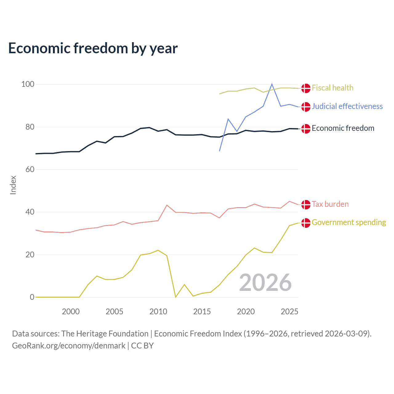 Data sources: The Heritage Foundation | Economic Freedom Index (1996–2026, retrieved 2026-03-09).