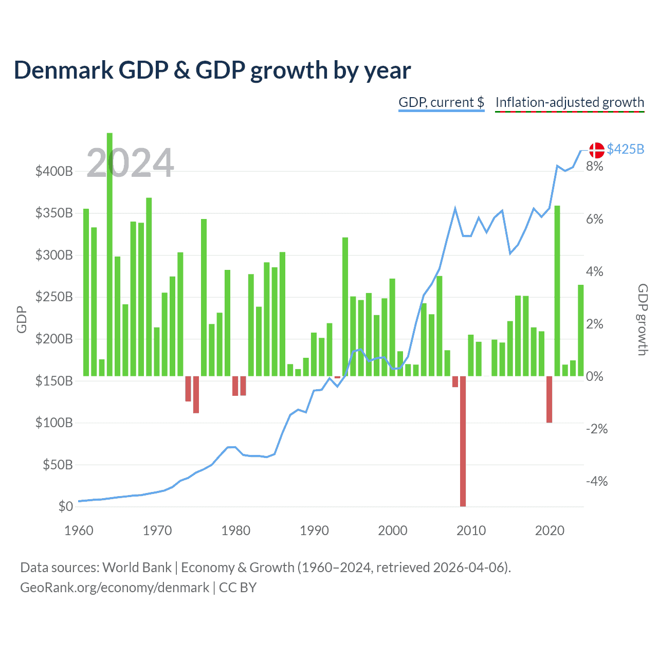Data sources: World Bank | Economy & Growth (1960–2024, retrieved 2026-04-06).