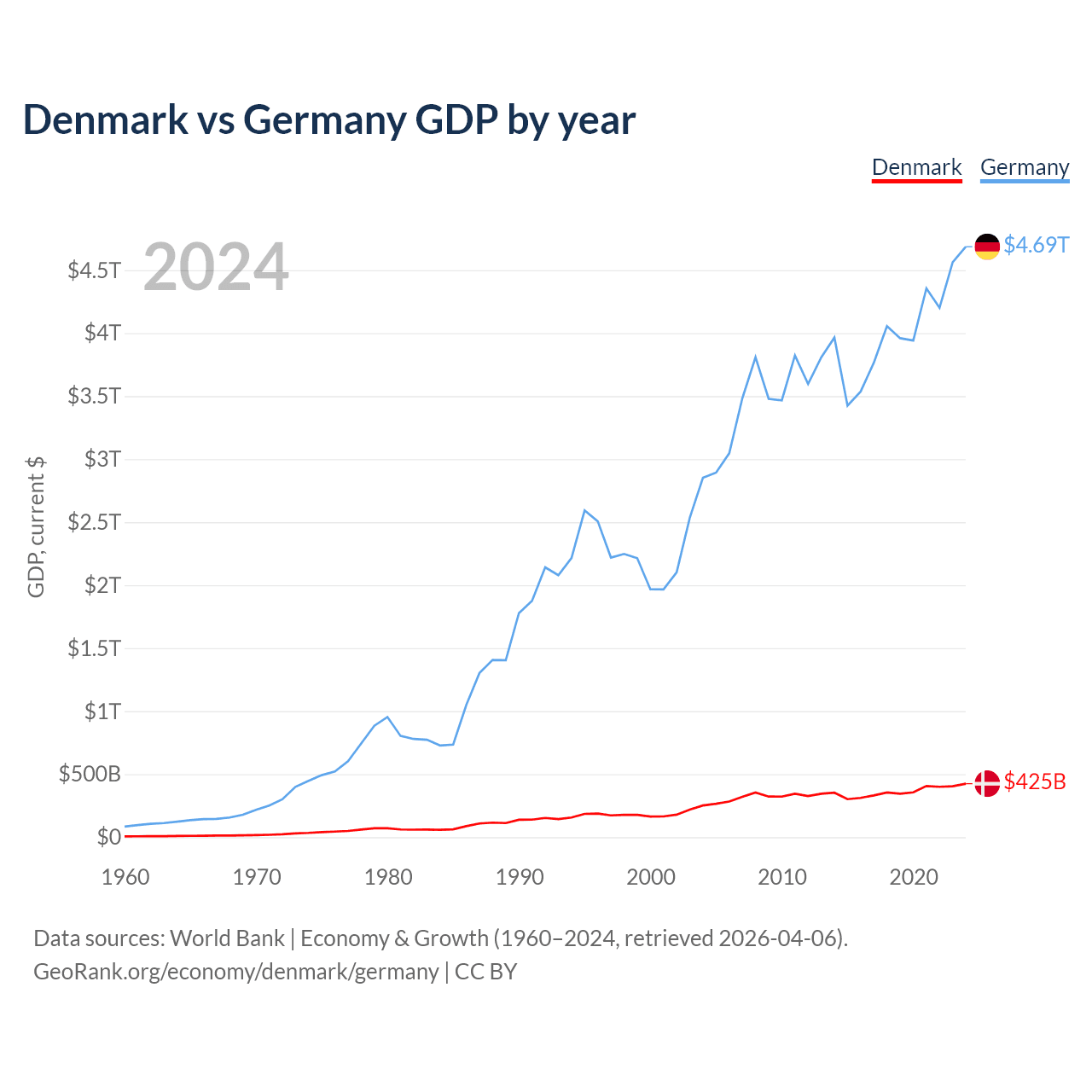 Denmark vs Germany GDP by year