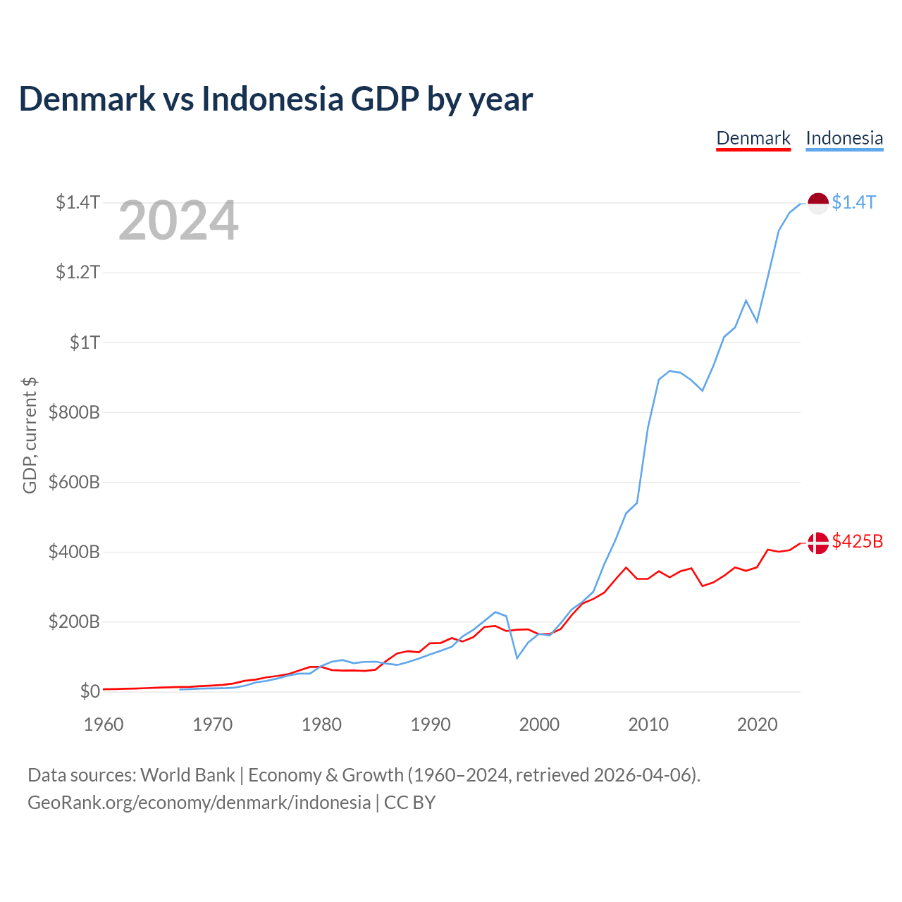 Denmark vs Indonesia GDP by year