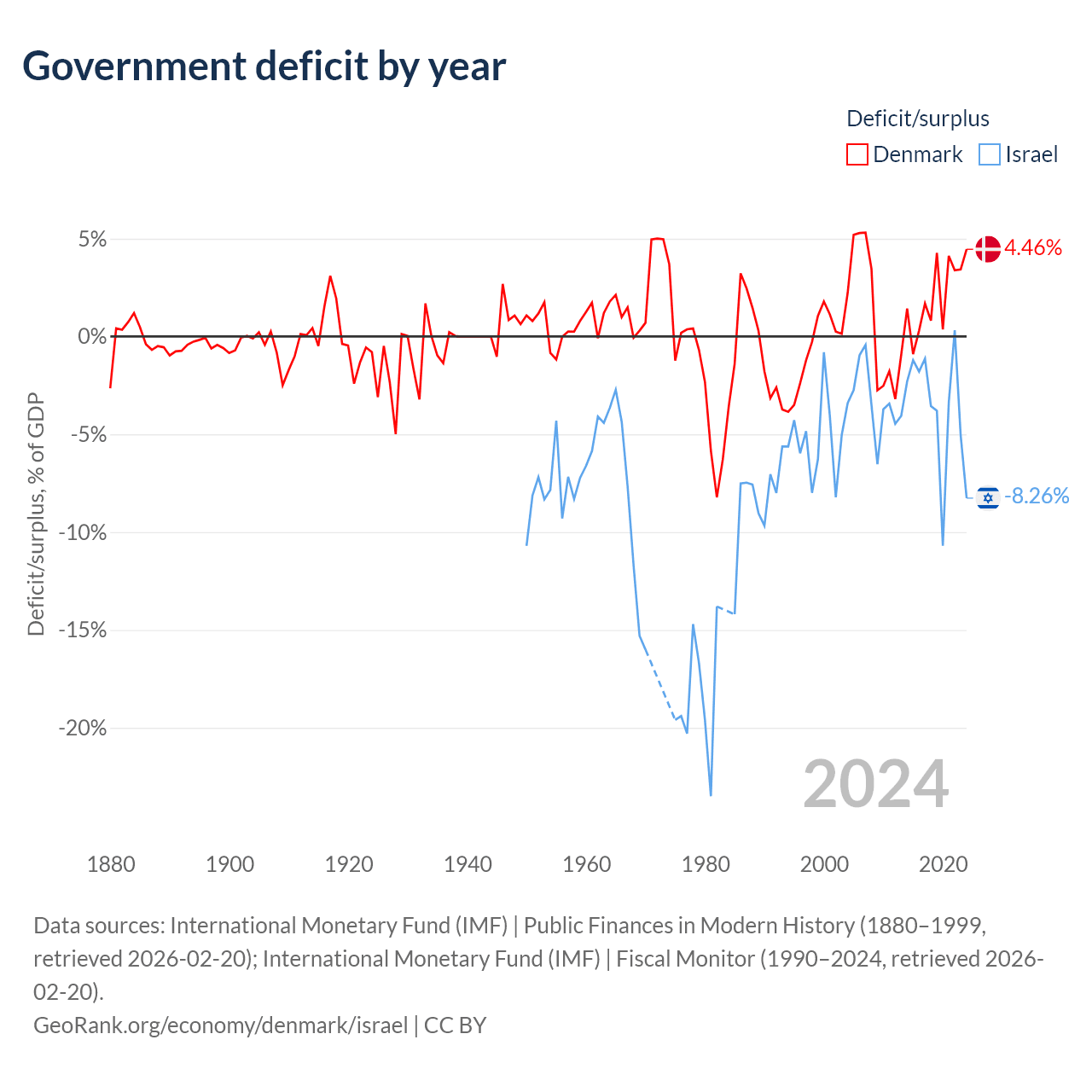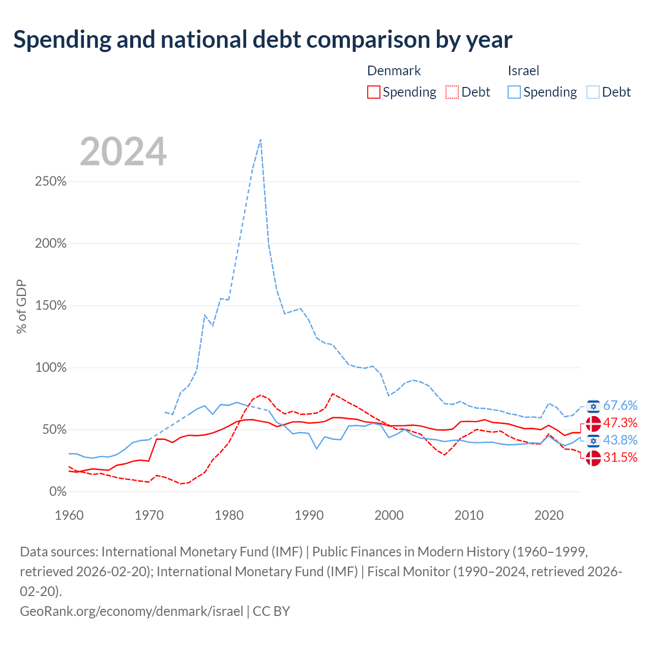 Denmark has $134B in government debt (31.5% of GDP), compared to $366B (67.6% of GDP) in Israel.