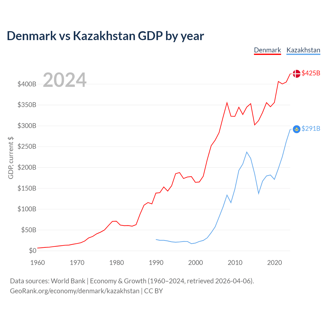 Denmark vs Kazakhstan GDP by year