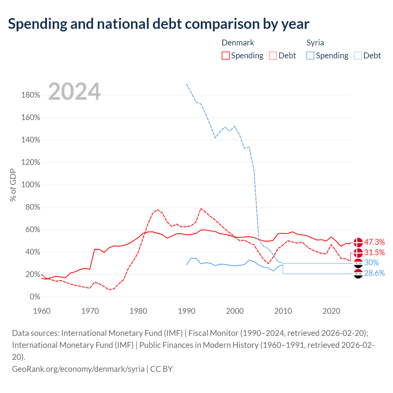 Denmark has $134B in government debt (31.5% of GDP), compared to $18.4B (30% of GDP) in Syria.