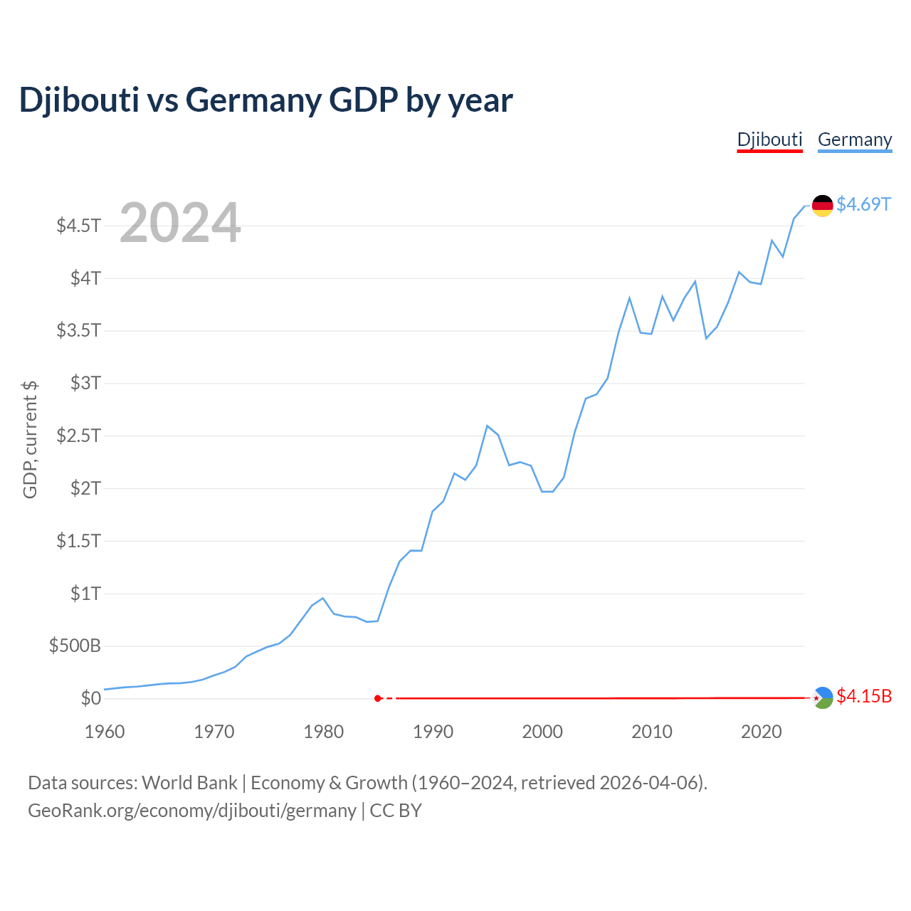 Djibouti vs Germany GDP by year
