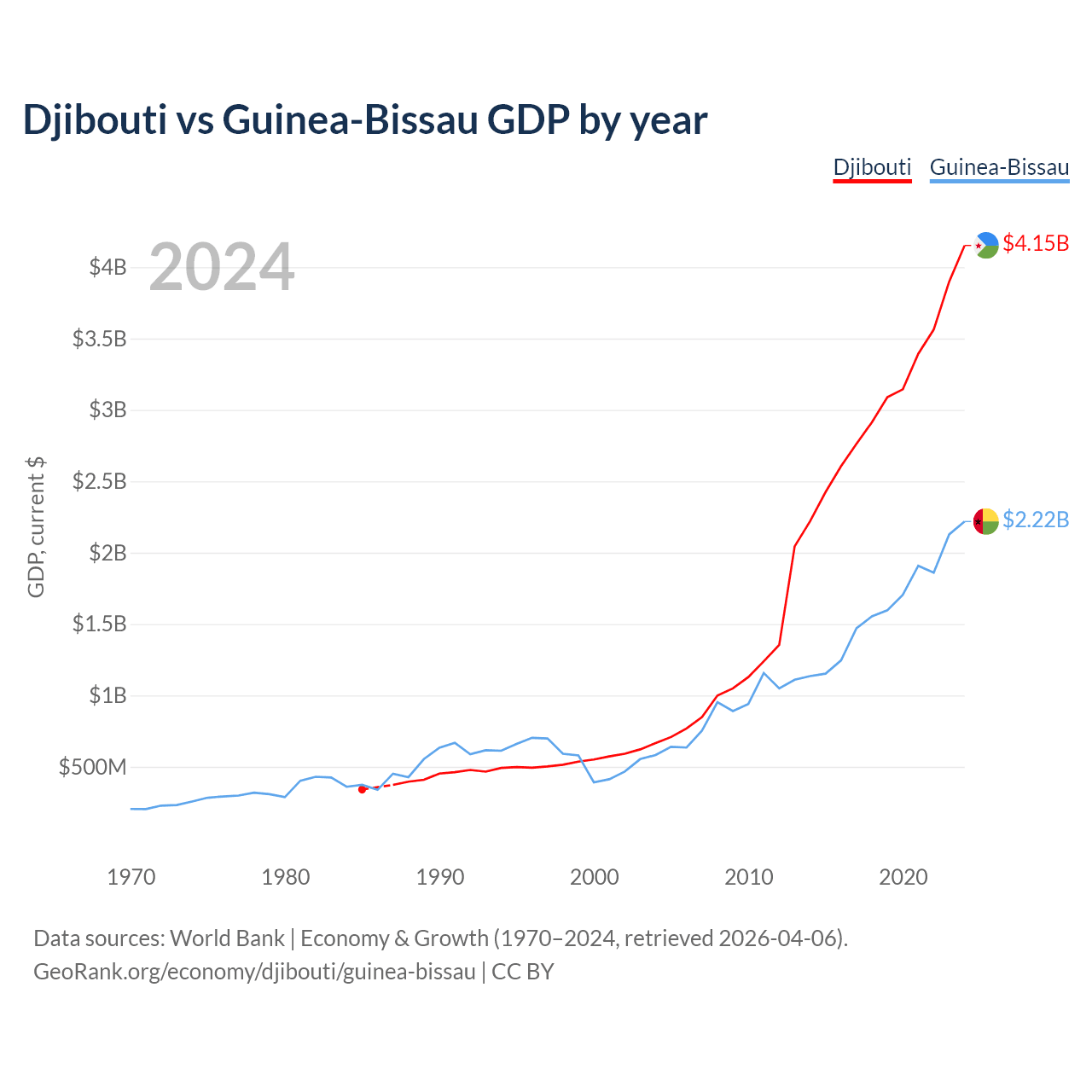 Djibouti vs Guinea-Bissau GDP by year