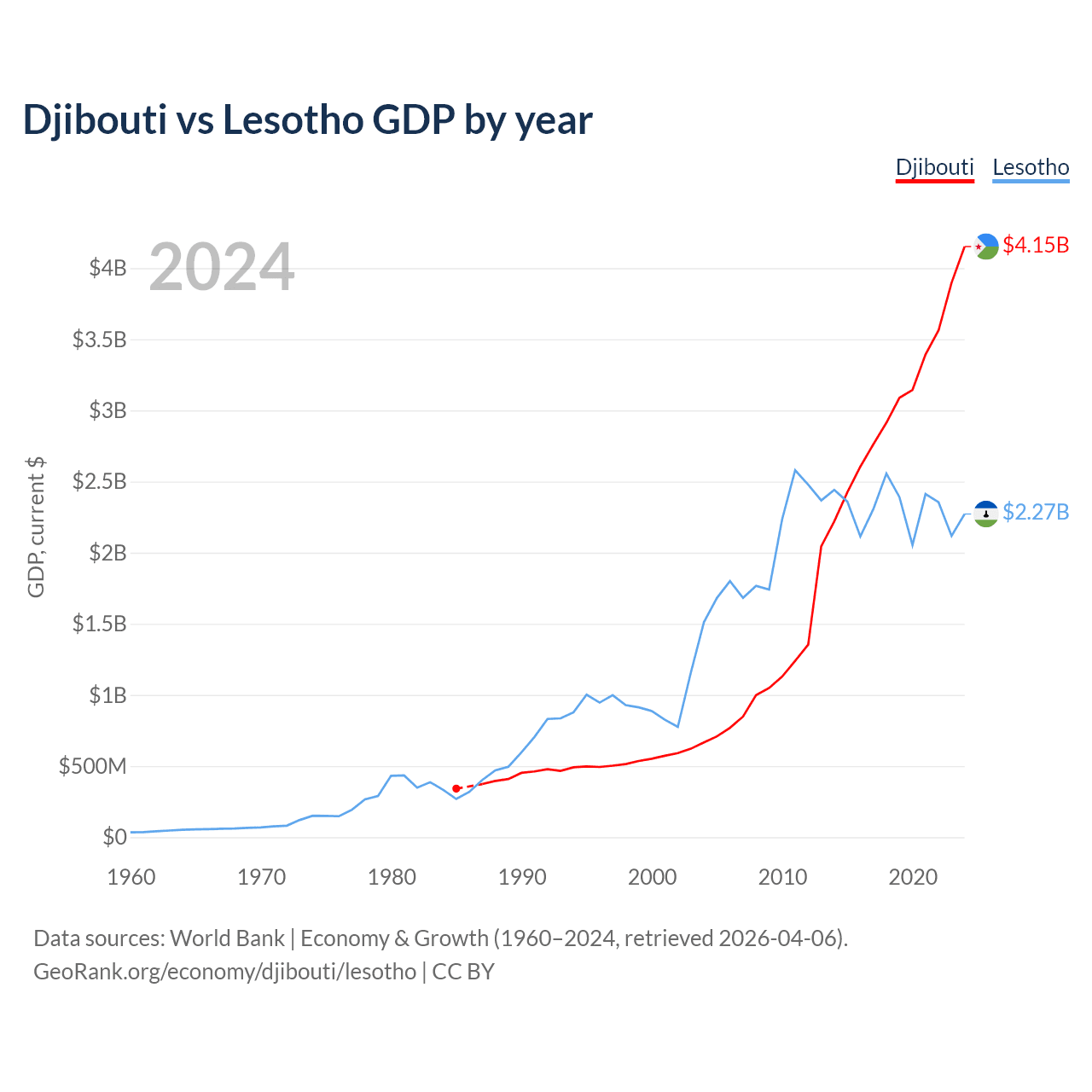 Djibouti vs Lesotho GDP by year