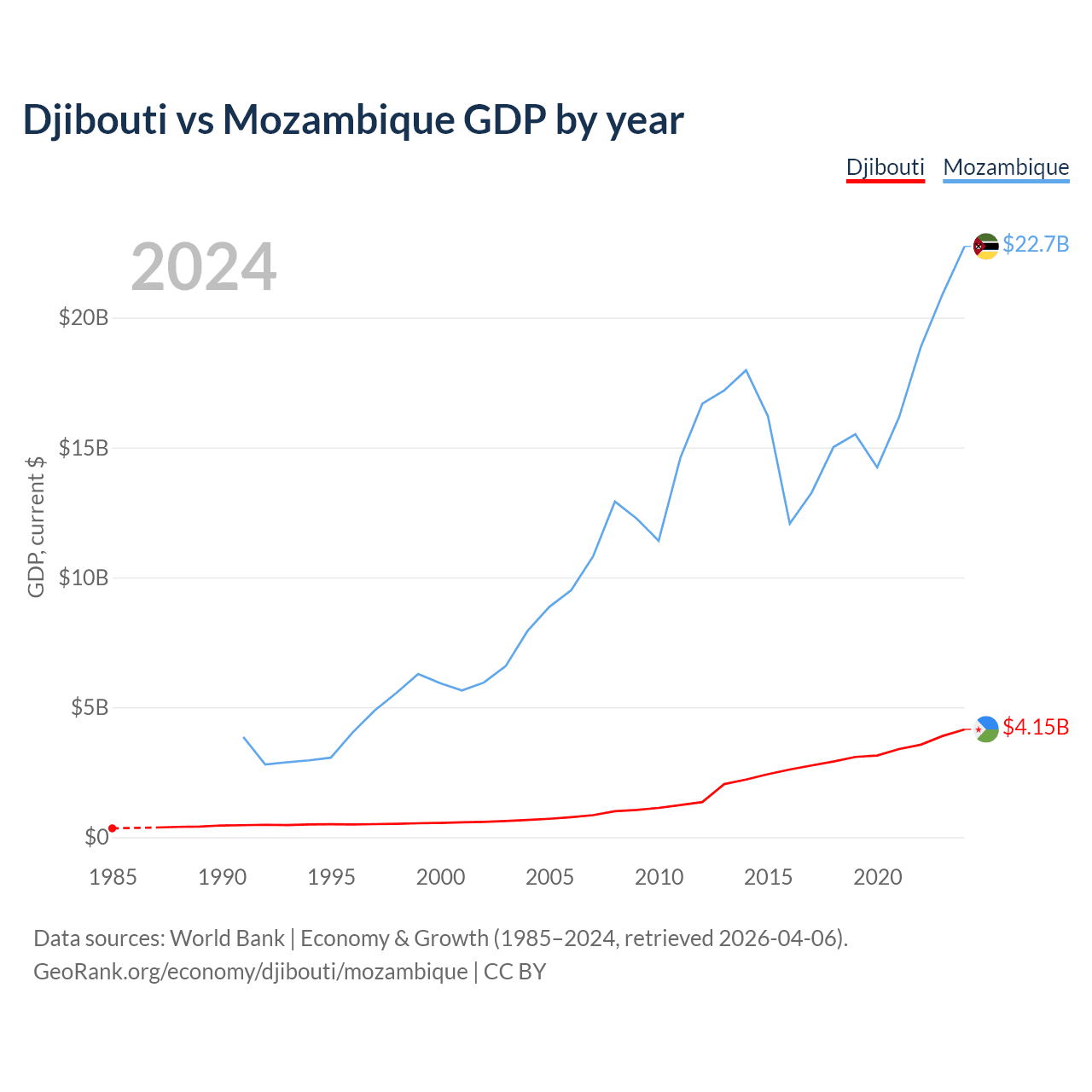 Djibouti vs Mozambique GDP by year