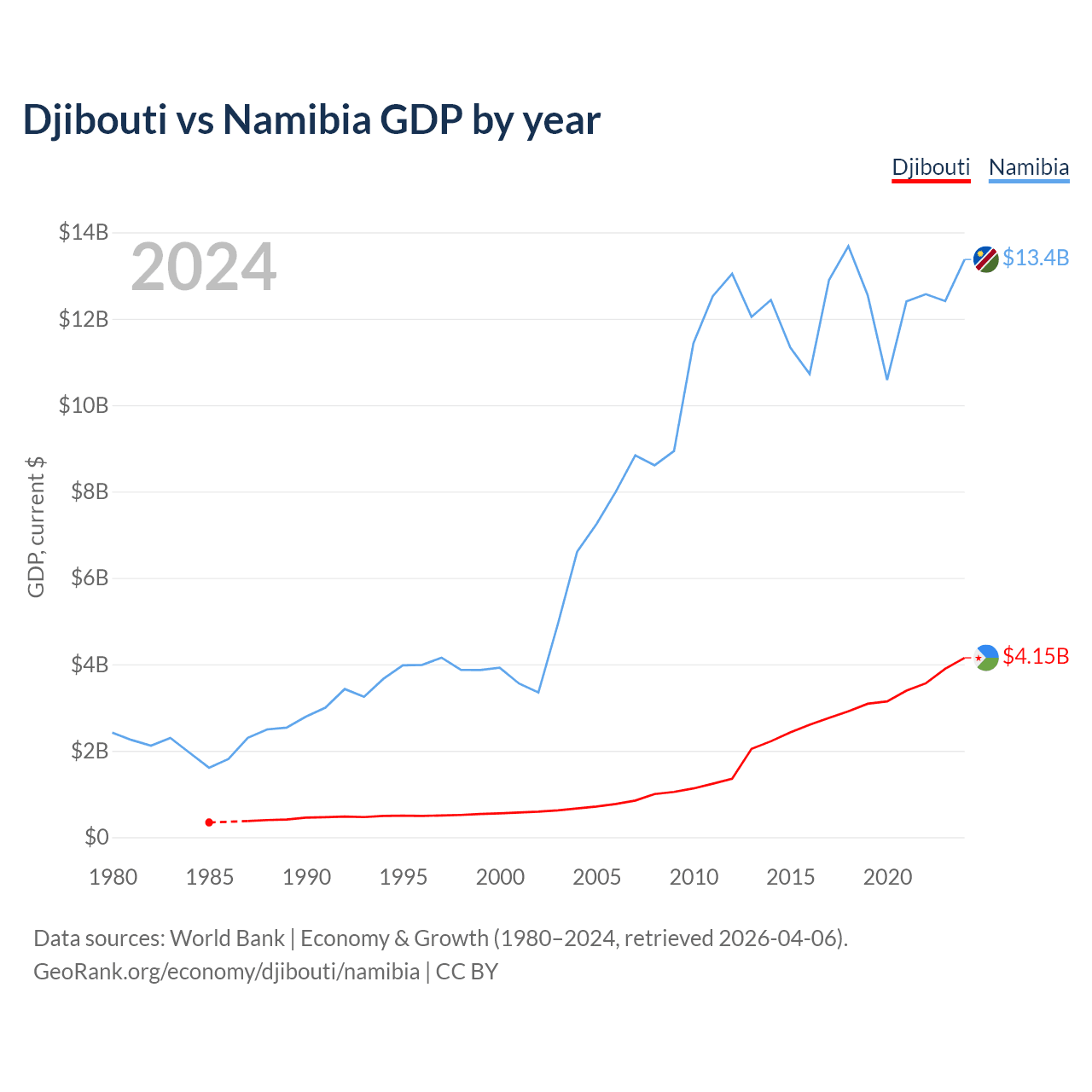 Djibouti vs Namibia GDP by year