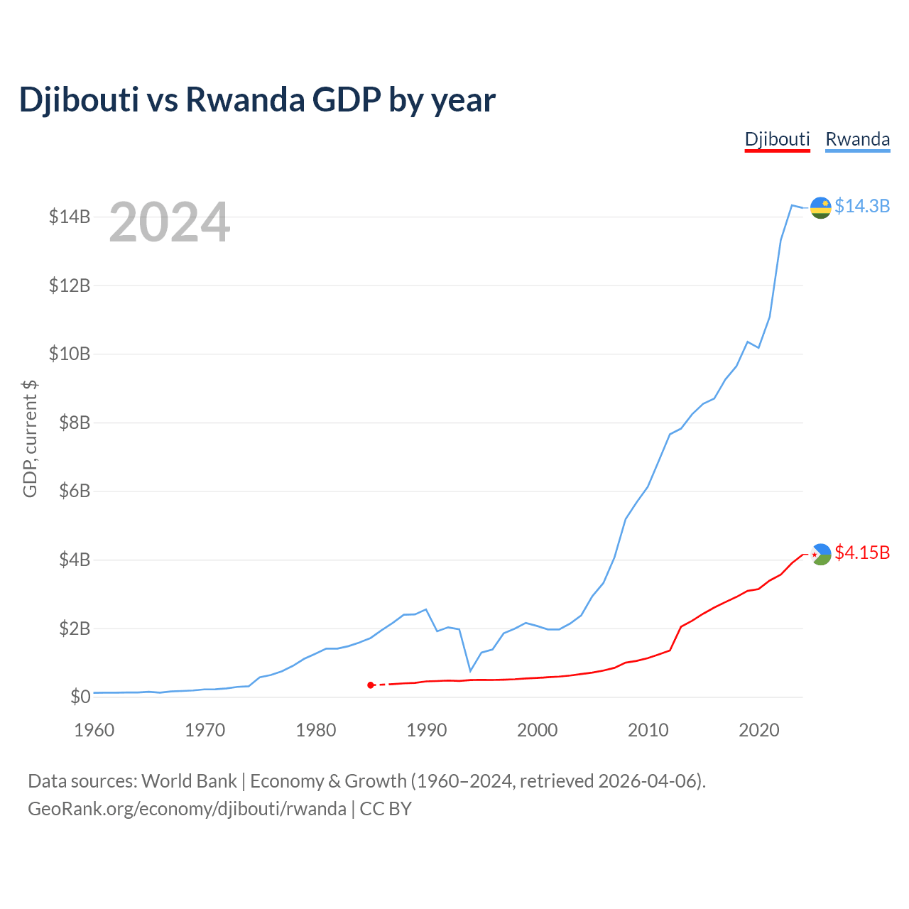 Djibouti vs Rwanda GDP by year