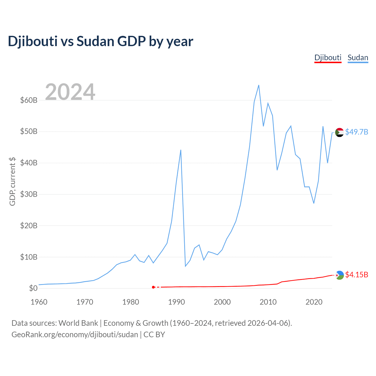 Djibouti vs Sudan GDP by year