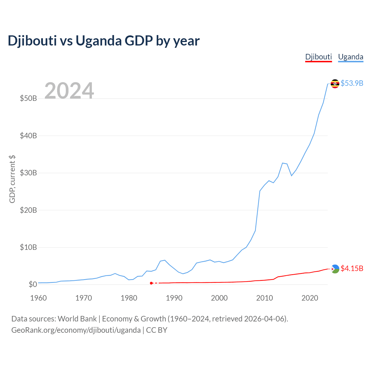 Djibouti vs Uganda GDP by year