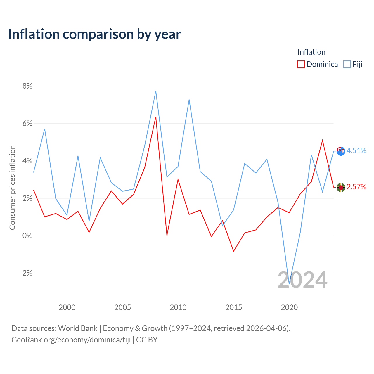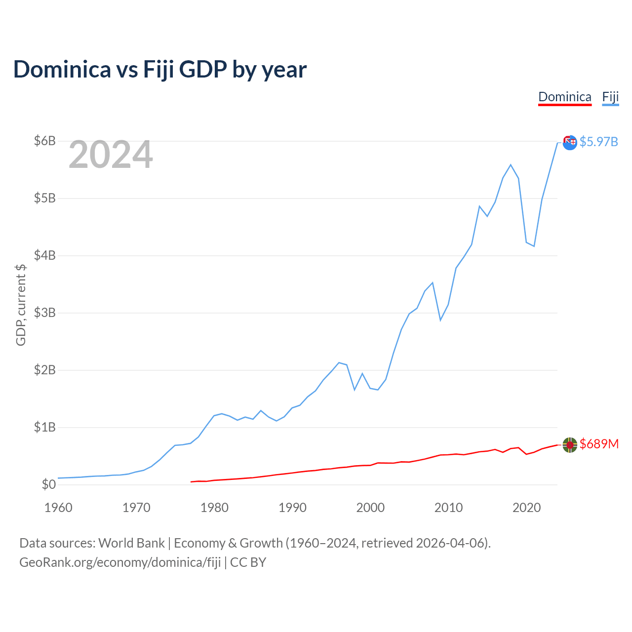 Dominica vs Fiji GDP by year