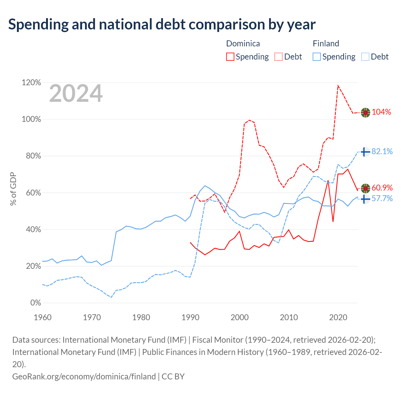 Dominica has $713M in government debt (103.5% of GDP), compared to $245B (82.1% of GDP) in Finland.