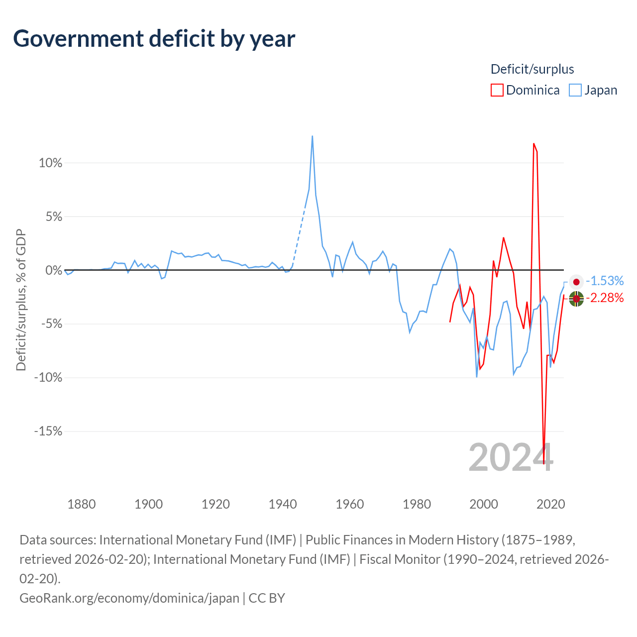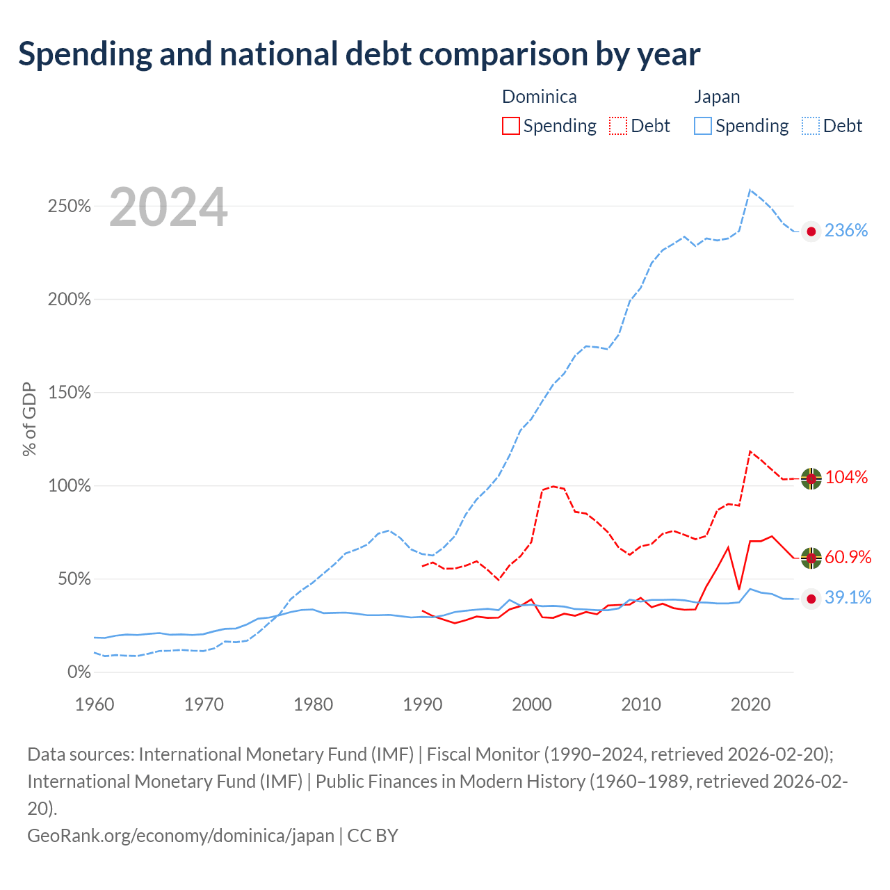 Dominica has $713M in government debt (103.5% of GDP), compared to $9.51T (236.1% of GDP) in Japan.