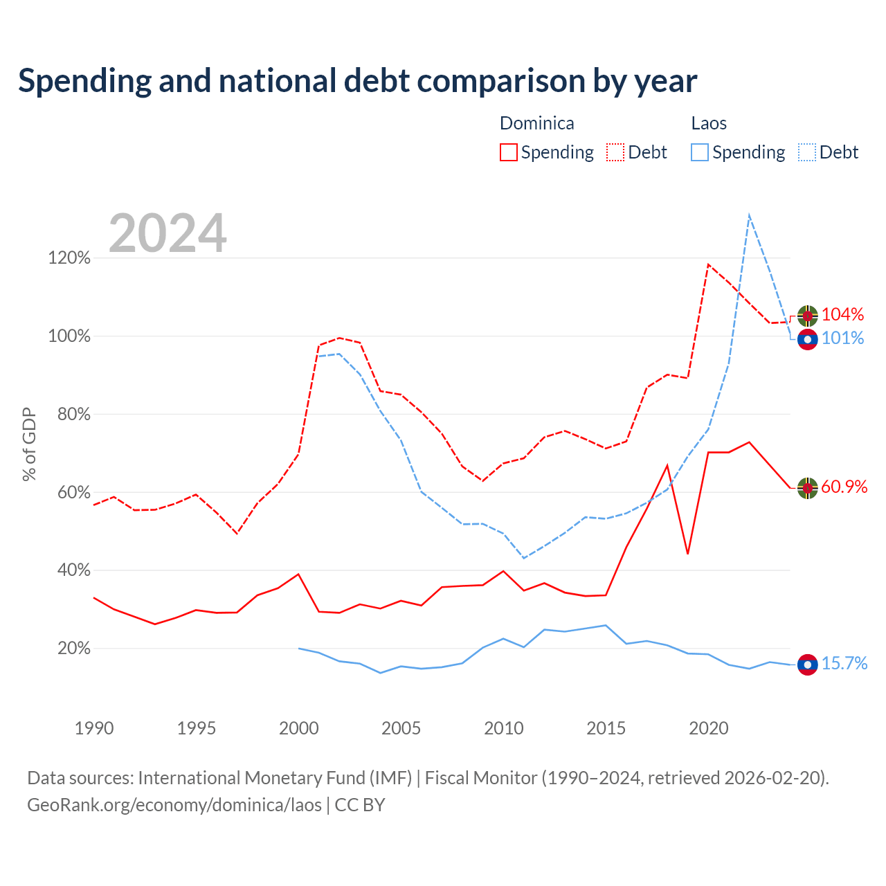 Dominica has $713M in government debt (103.5% of GDP), compared to $16.6B (100.5% of GDP) in Laos.