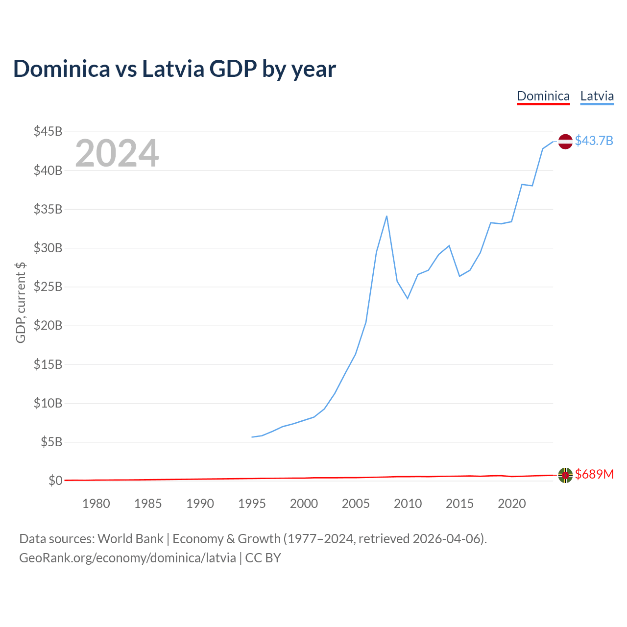 Dominica vs Latvia GDP by year