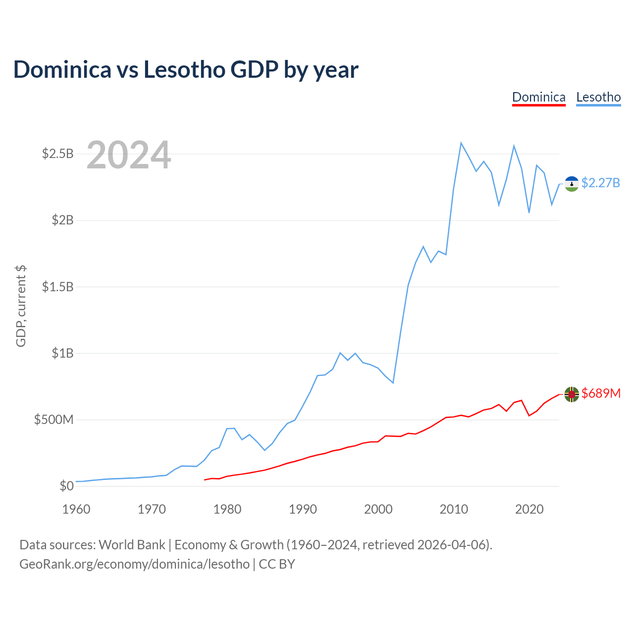 Dominica vs Lesotho GDP by year