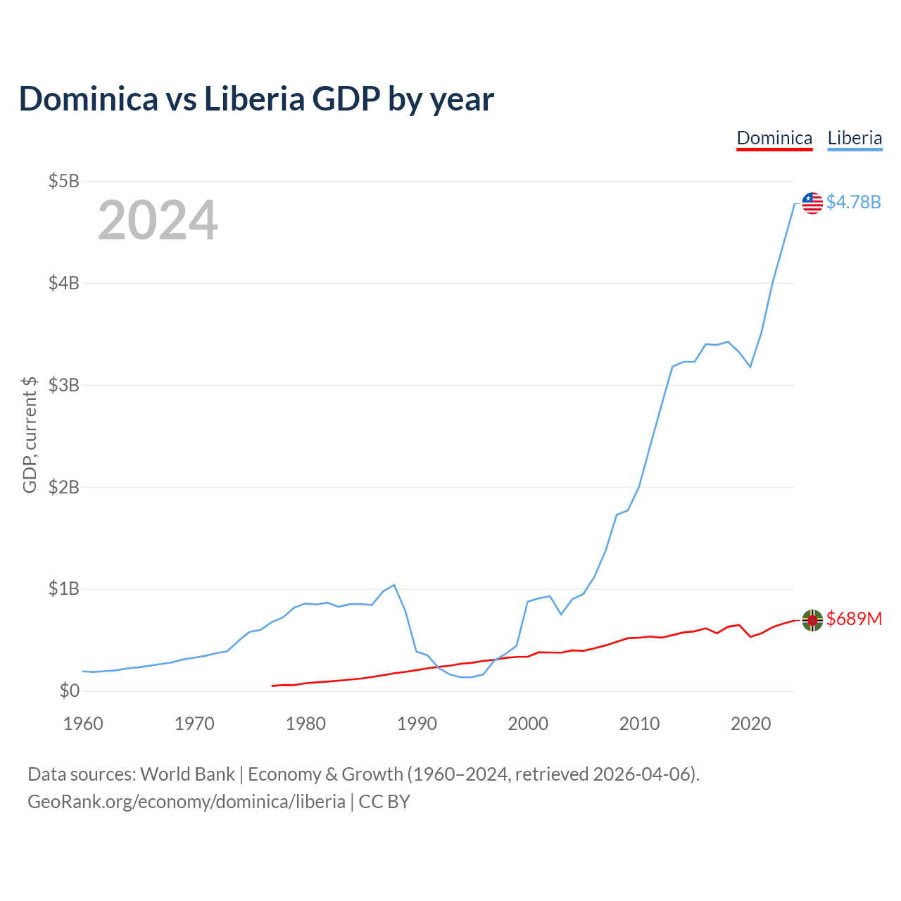 Dominica vs Liberia GDP by year
