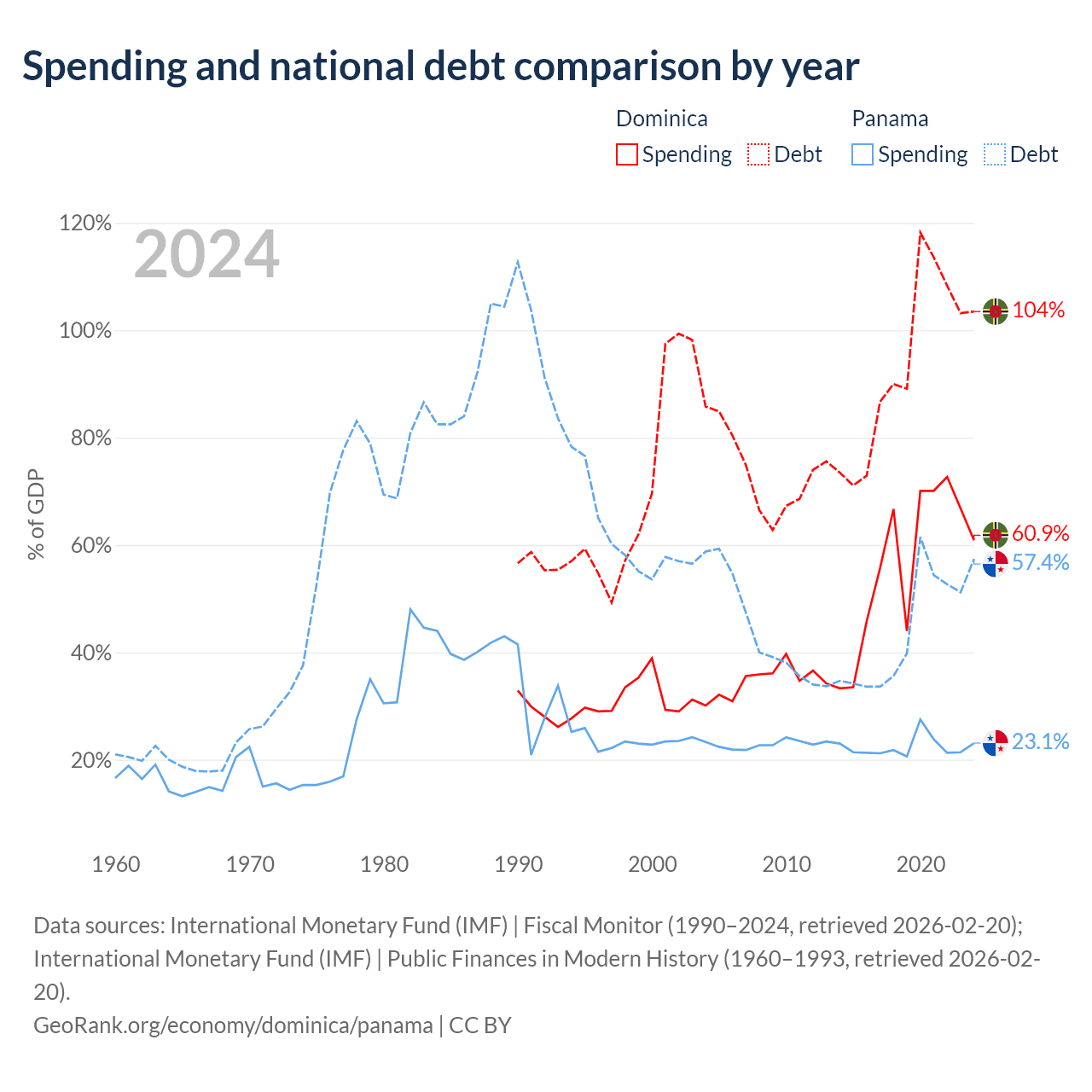 Dominica has $713M in government debt (103.5% of GDP), compared to $49.6B (57.4% of GDP) in Panama.