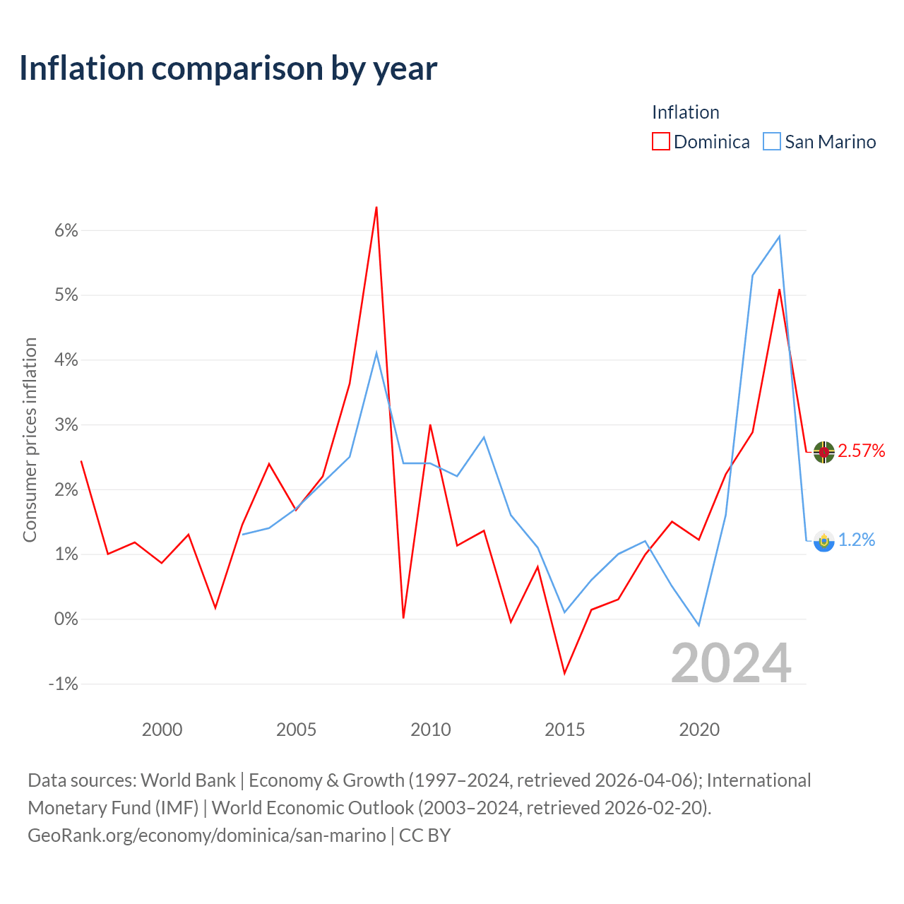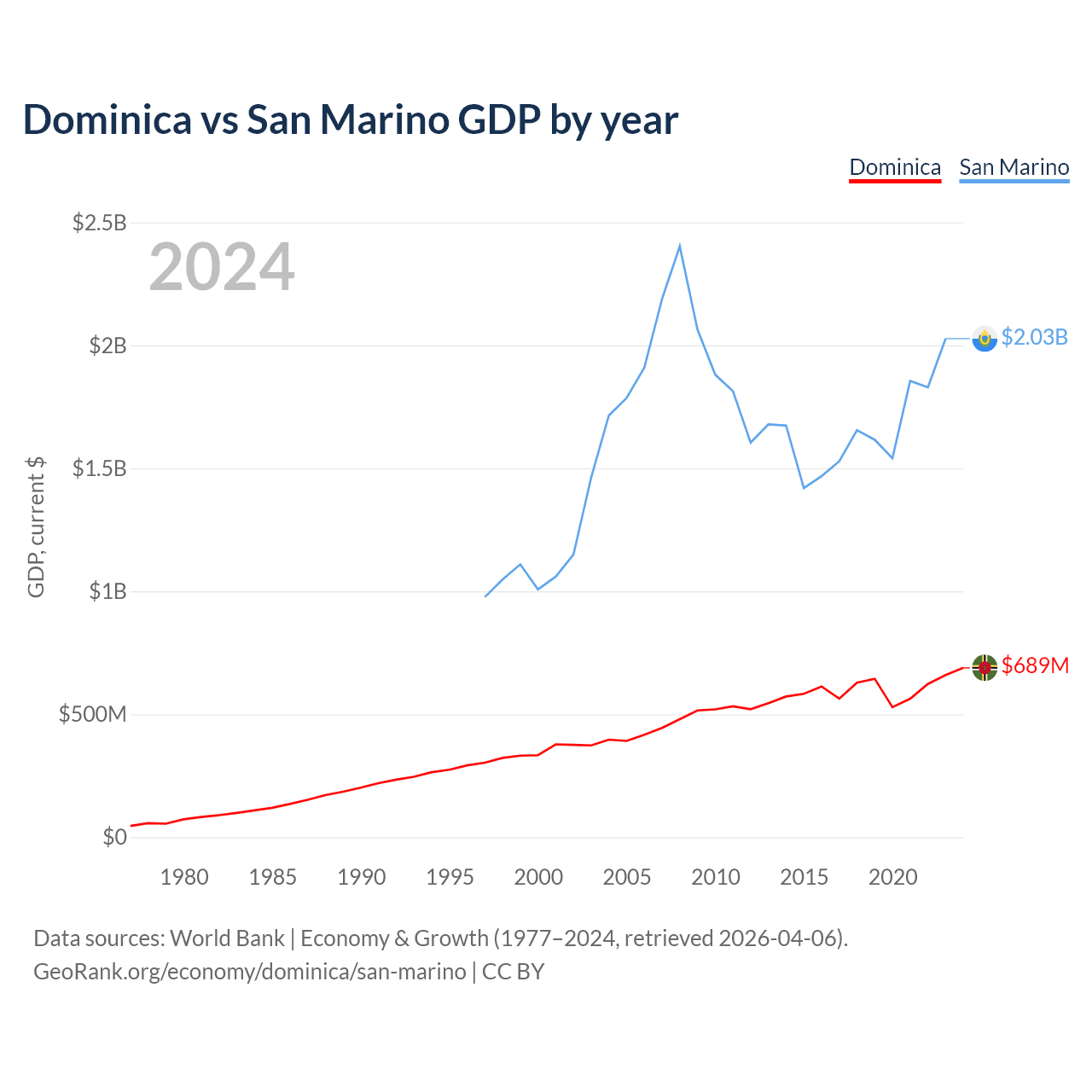 Dominica vs San Marino GDP by year
