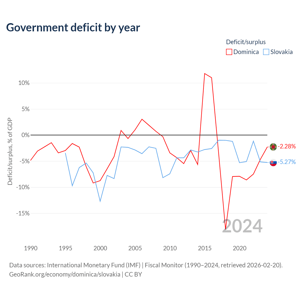 Dominica has $713M in government debt (103.5% of GDP), compared to $80.7B (57.2% of GDP) in Slovakia.