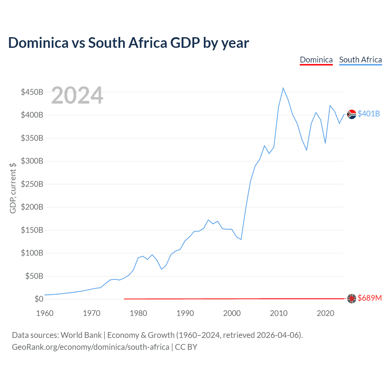 Dominica vs South Africa GDP by year