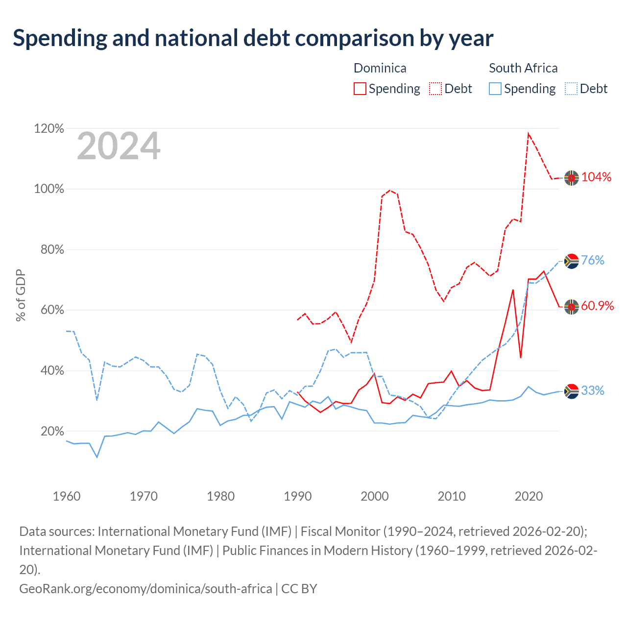 Dominica has $713M in government debt (103.5% of GDP), compared to $305B (76% of GDP) in South Africa.