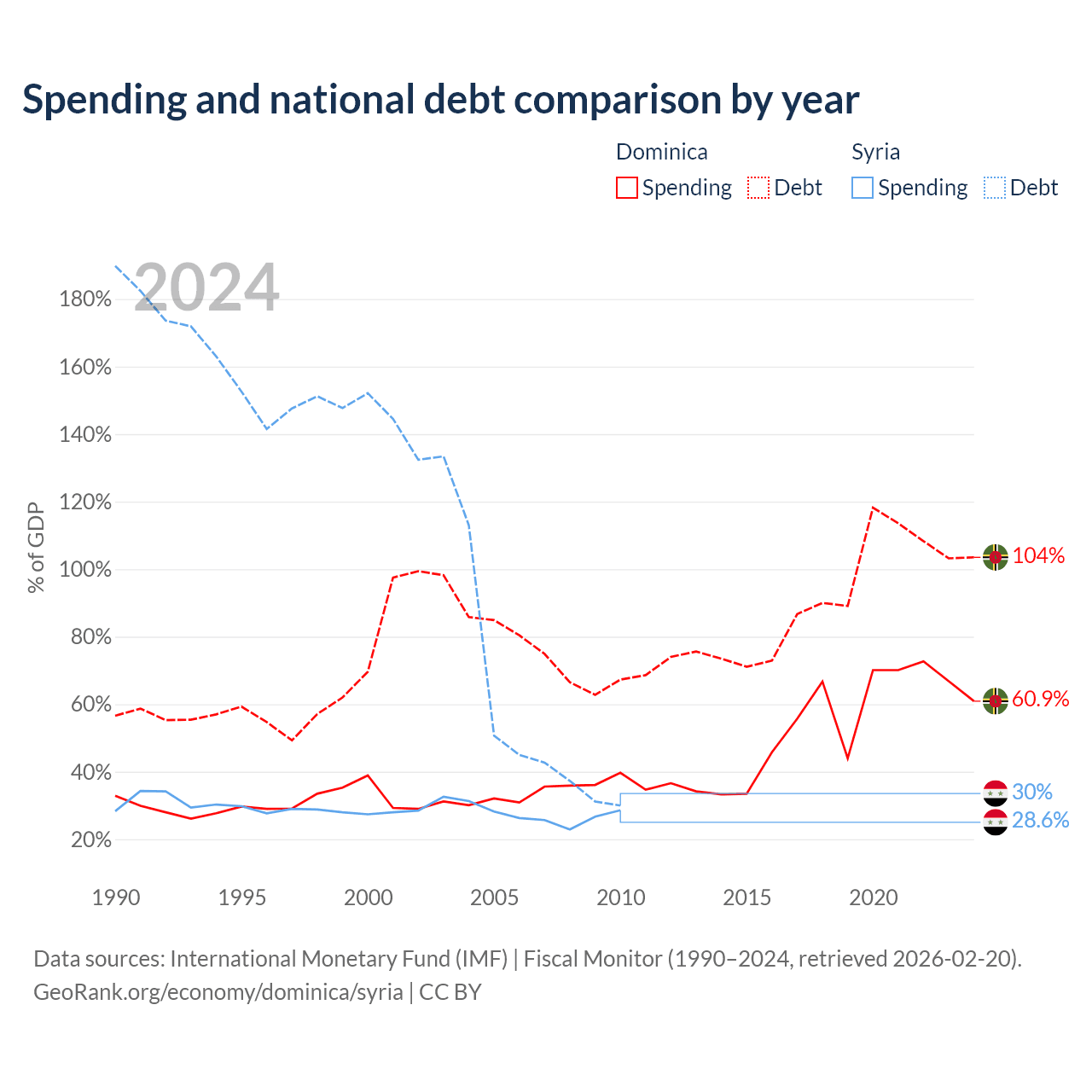 Dominica has $713M in government debt (103.5% of GDP), compared to $18.4B (30% of GDP) in Syria.