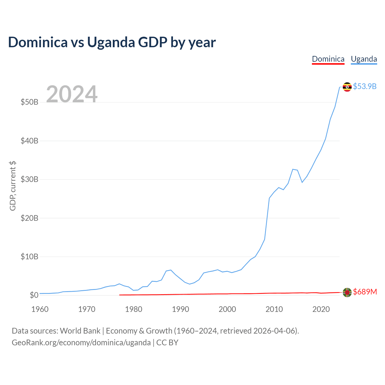 Dominica vs Uganda GDP by year