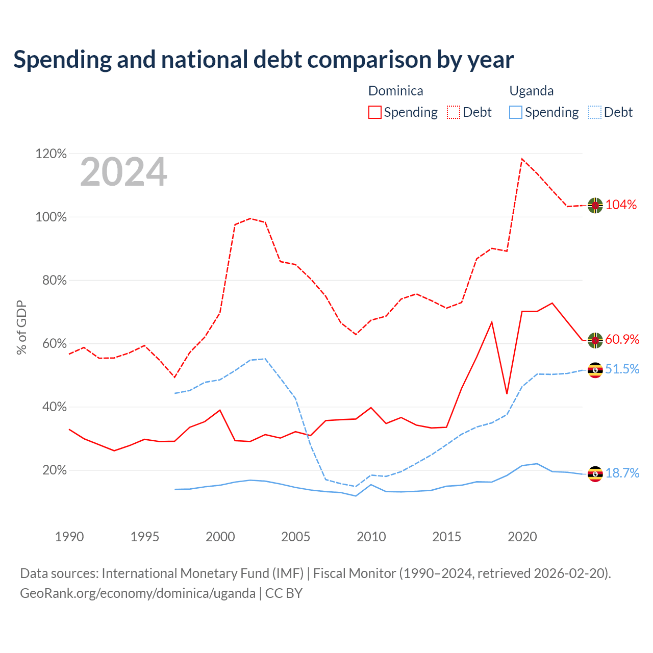 Dominica has $713M in government debt (103.5% of GDP), compared to $27.8B (51.5% of GDP) in Uganda.