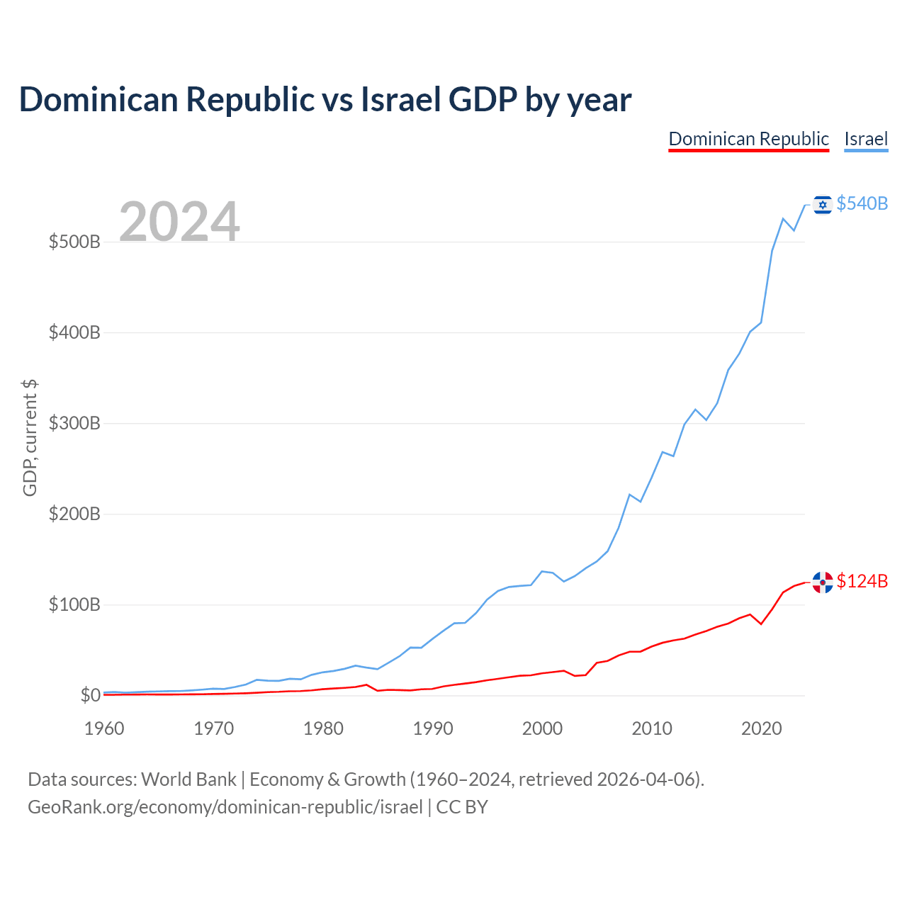 Dominican Republic vs Israel GDP by year