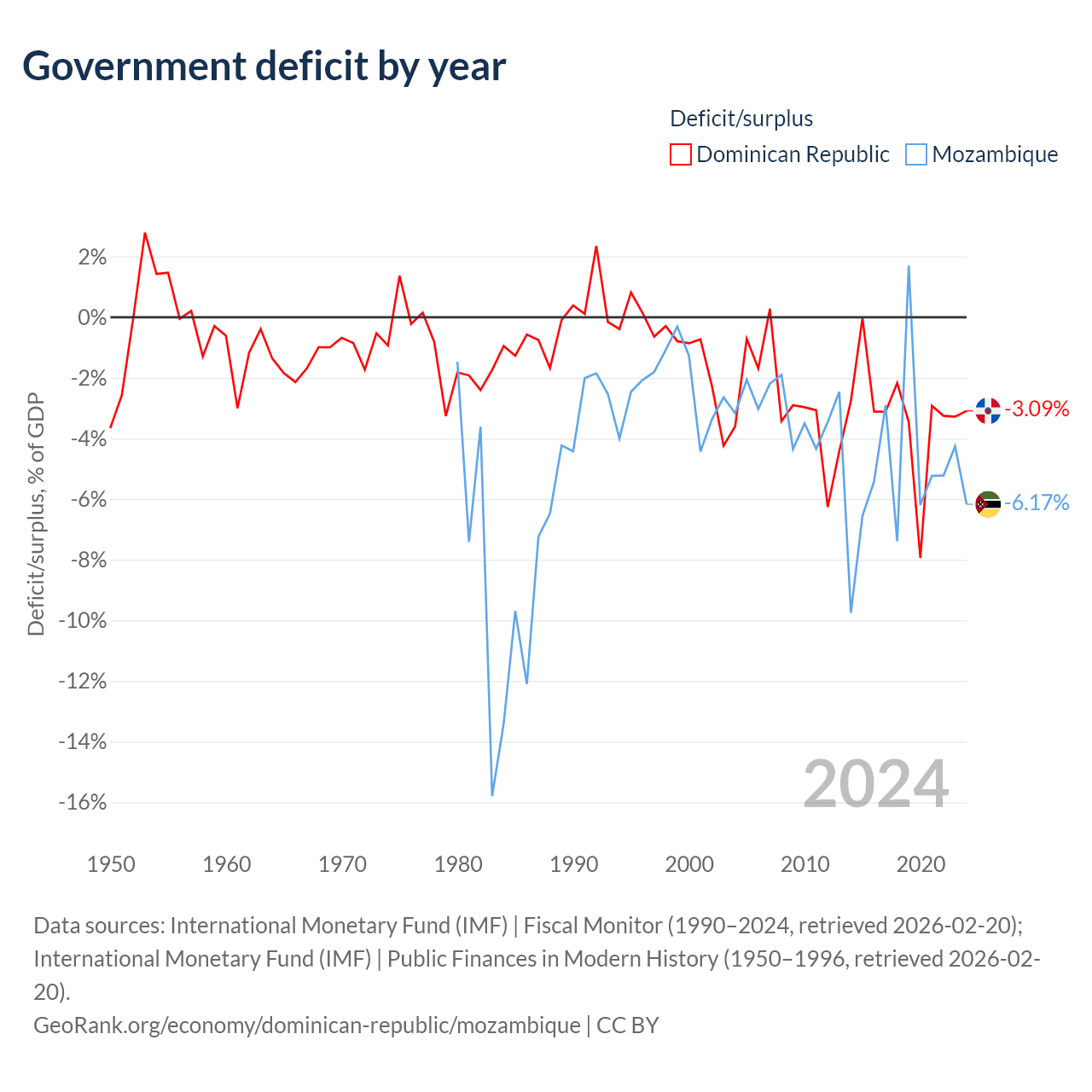 - International Monetary Fund (IMF) | Public Finances in Modern History (1950–1996, retrieved 2026-02-20)