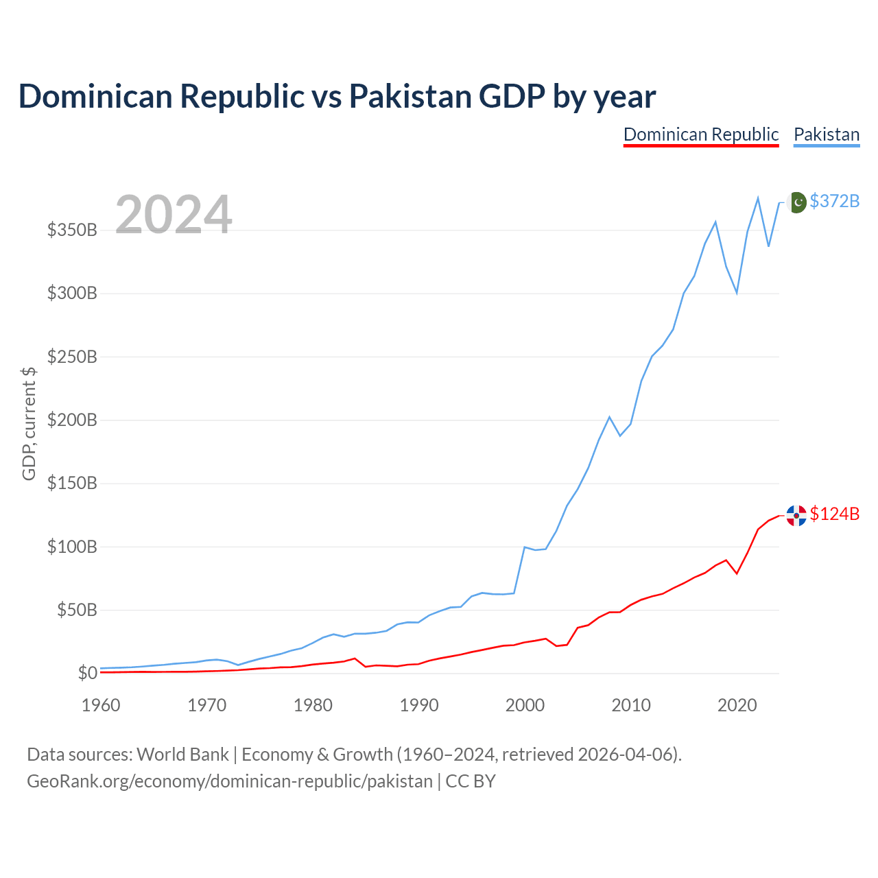Dominican Republic vs Pakistan GDP by year