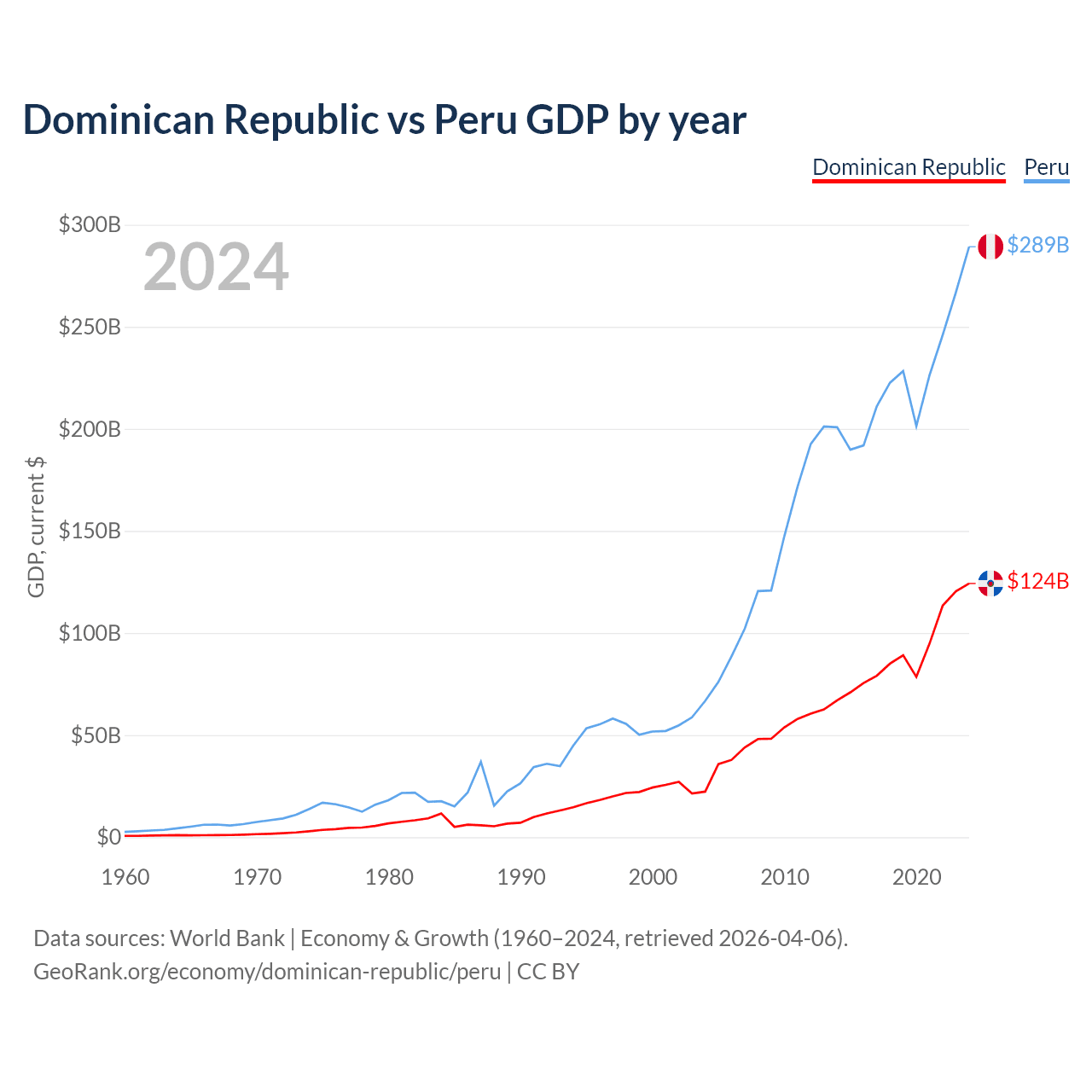 Dominican Republic vs Peru GDP by year
