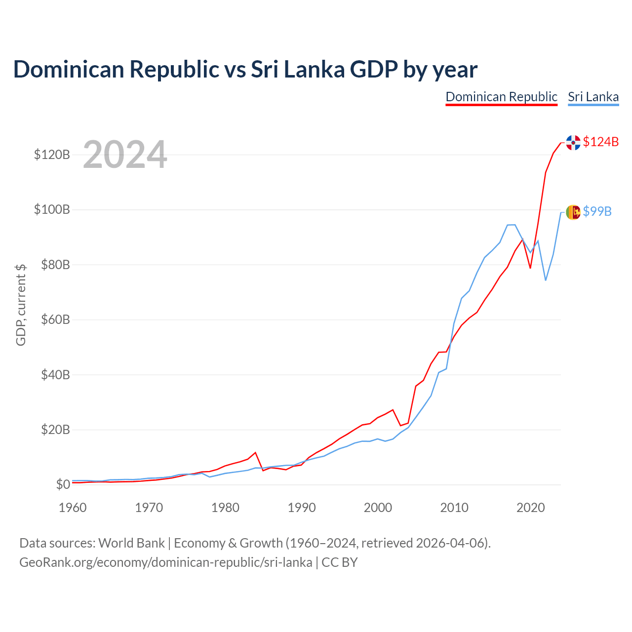 Dominican Republic vs Sri Lanka GDP by year